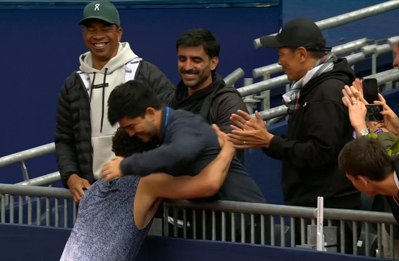第一盘。一上来,谢尔顿连破带保取得4:0领先。第八局,谢尔顿发球胜盘局,小遇挑战,成功保发。