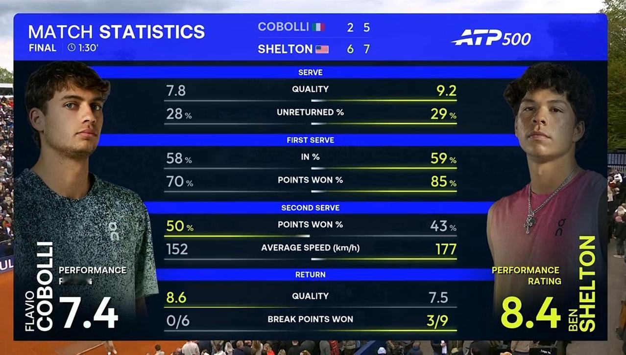 北京时间2026年4月19日晚上,ATP500慕尼黑站决赛,谢尔顿对阵科博利。