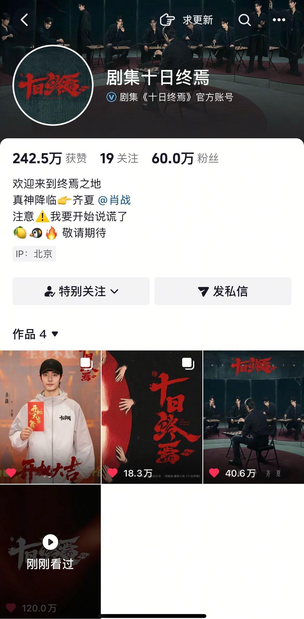 太火了十日终焉,🫘官宣单人视频120万赞,粉丝60万了