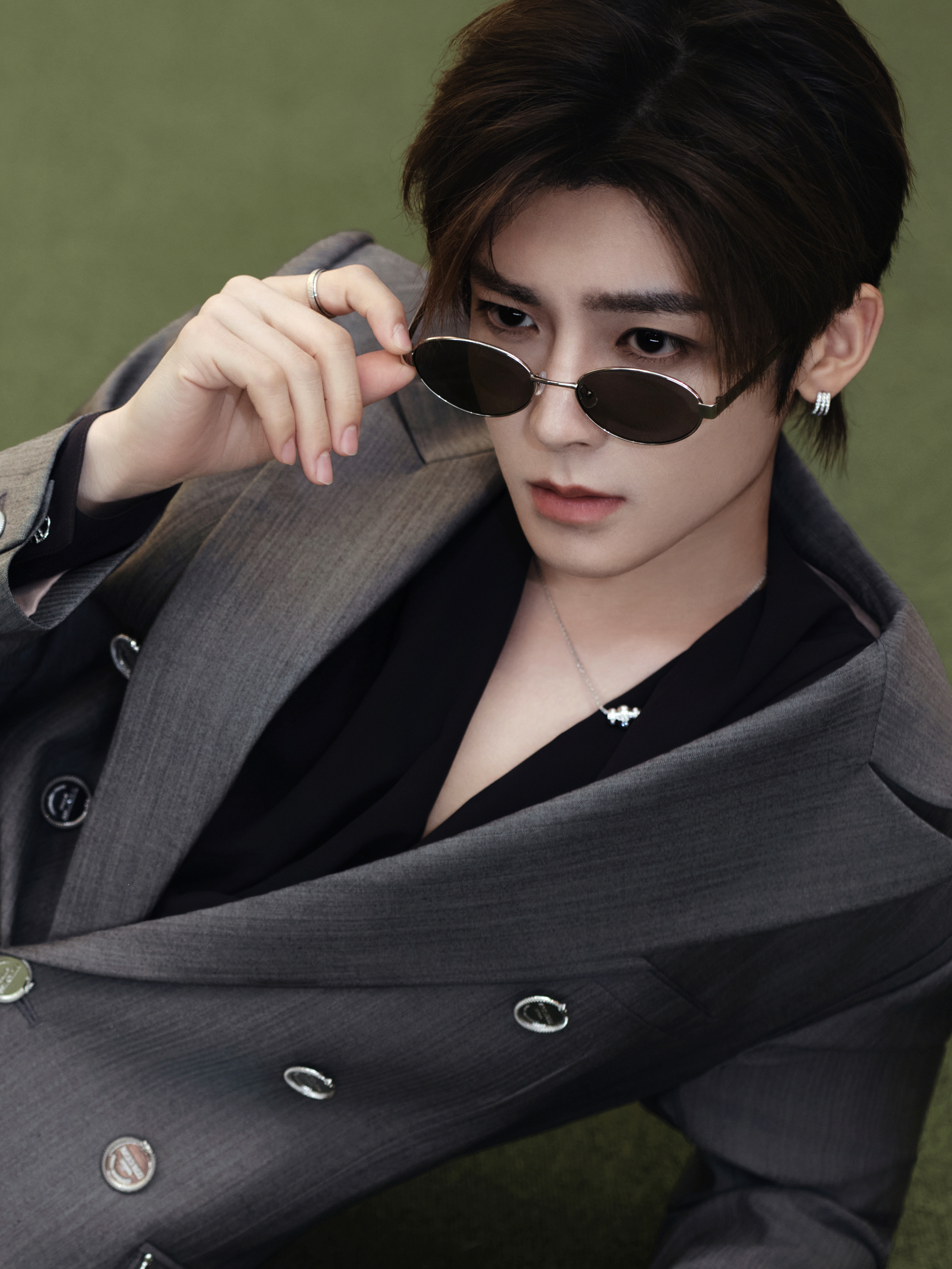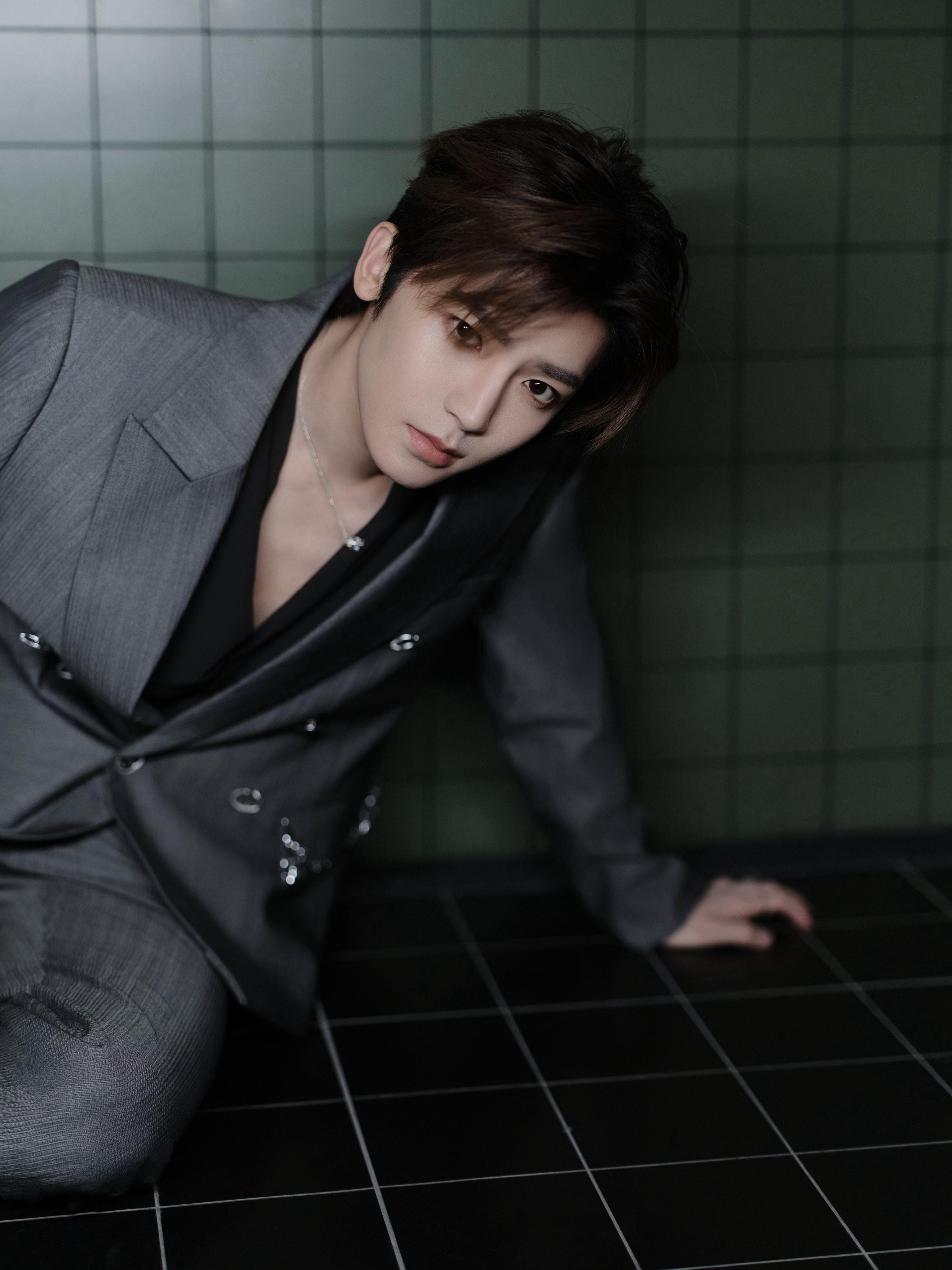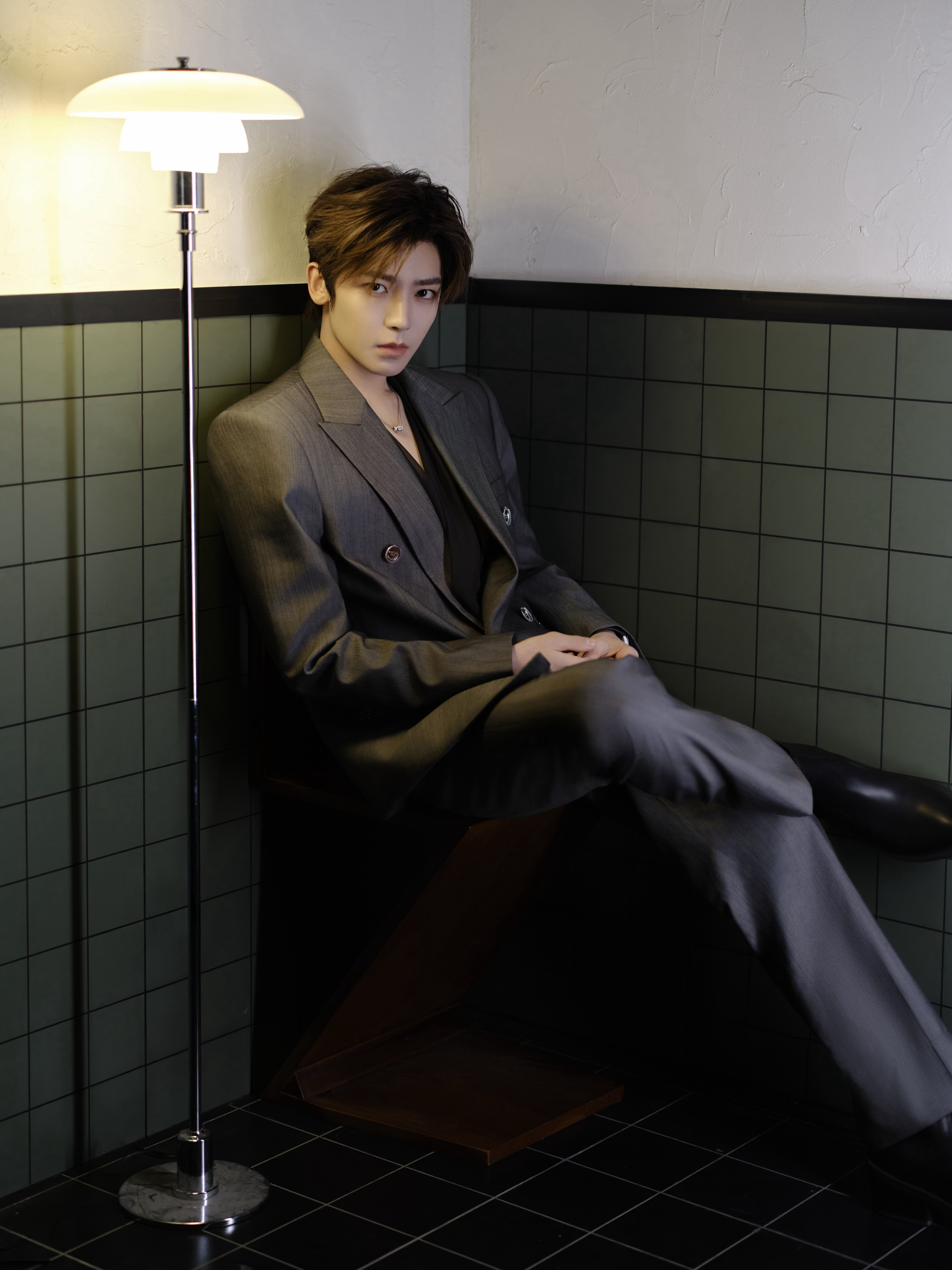 侯明昊 × 今日上海杜莎夫人蜡像馆蜡像揭幕活动,一袭灰调双排扣西服套装现身,搭配