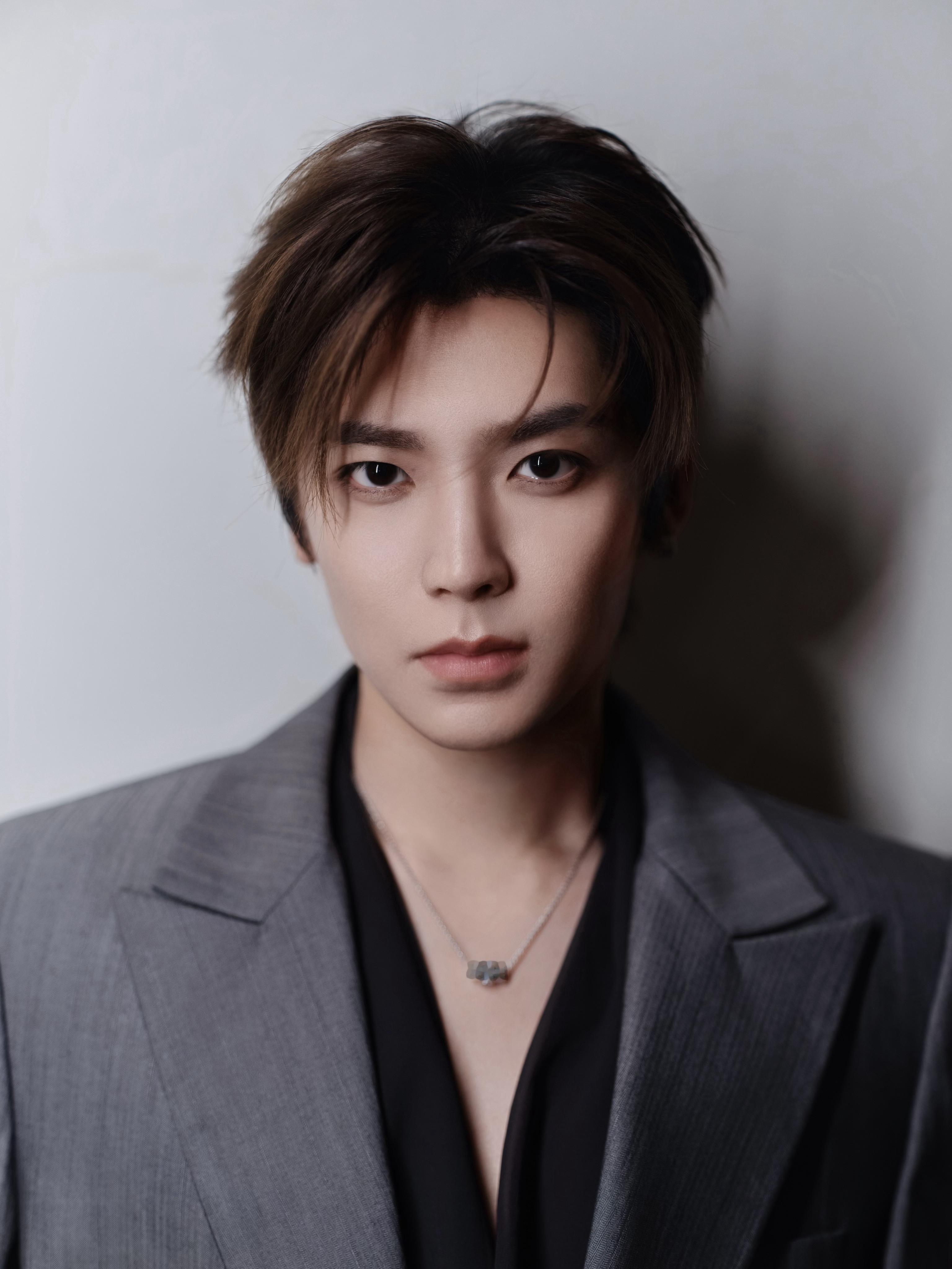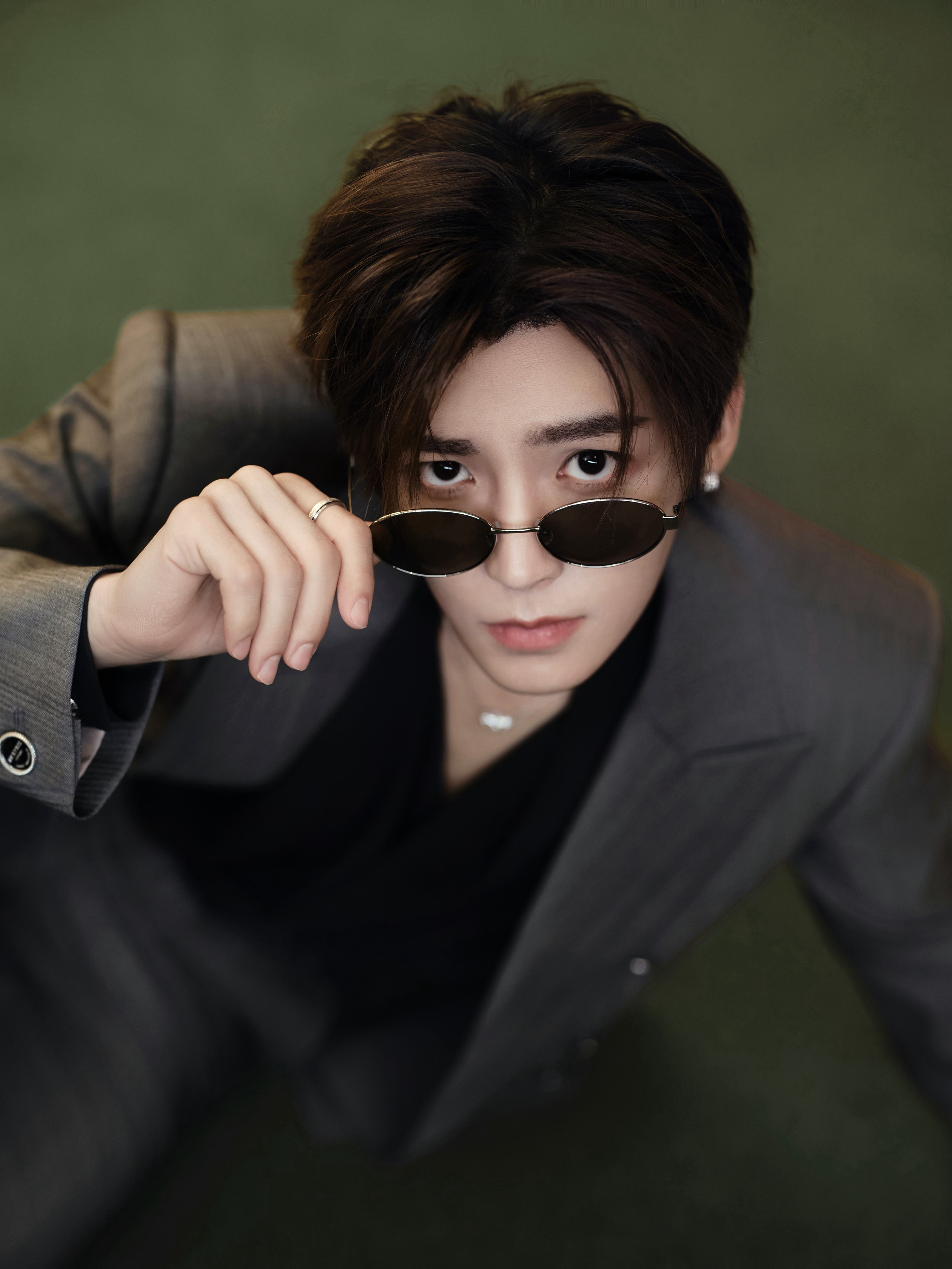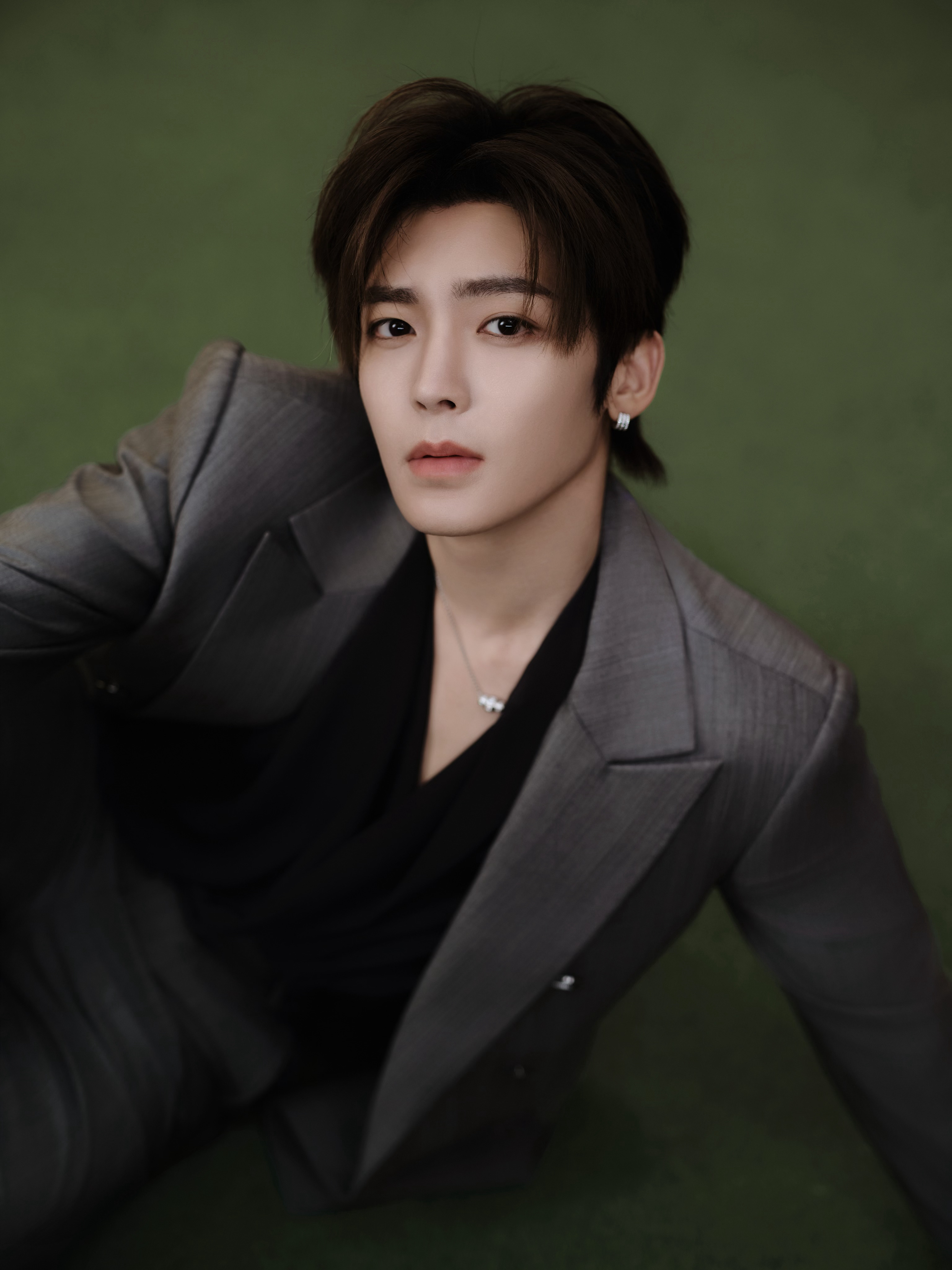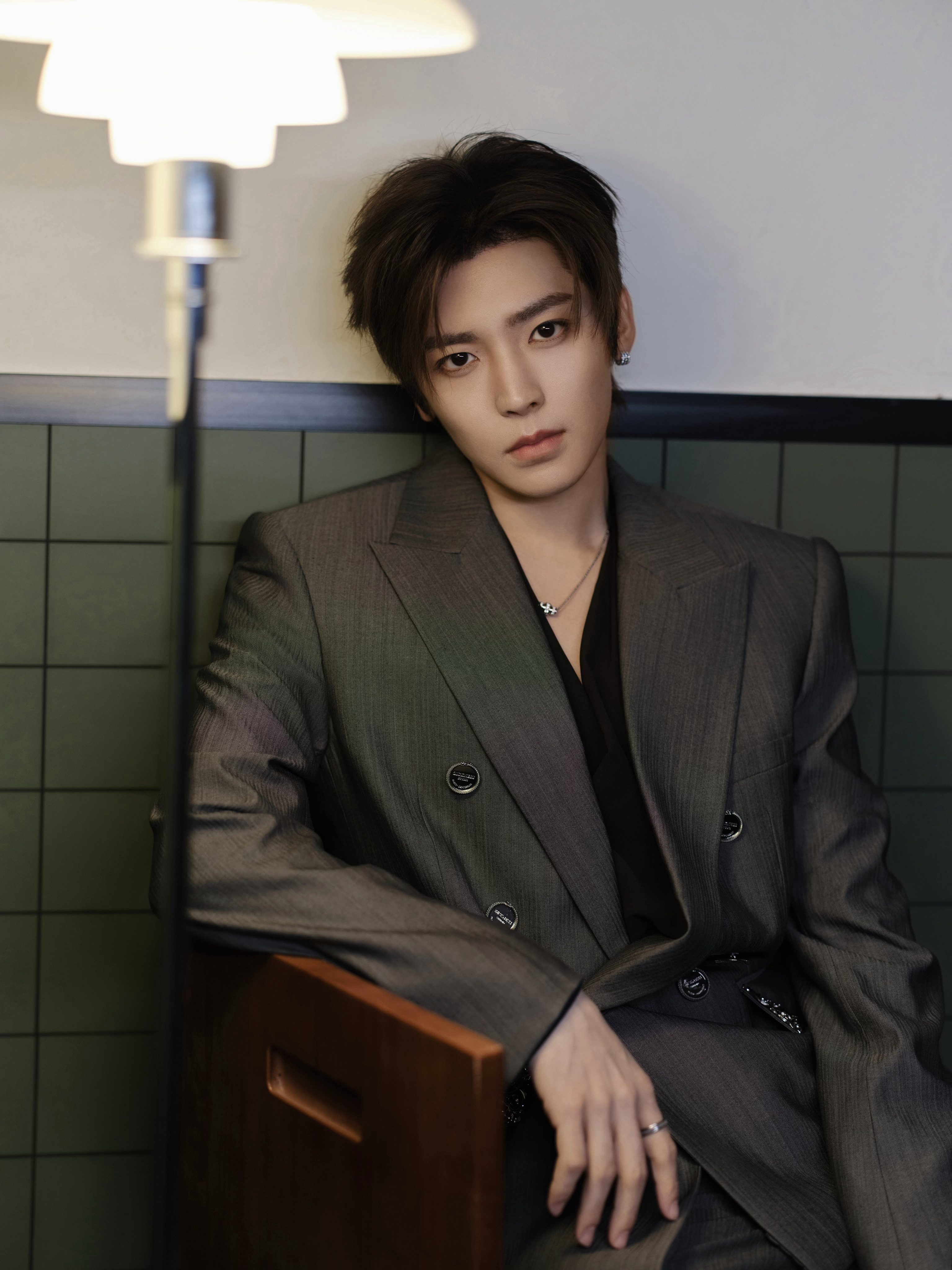 侯明昊 × 今日上海杜莎夫人蜡像馆蜡像揭幕活动,一袭灰调双排扣西服套装现身,搭配