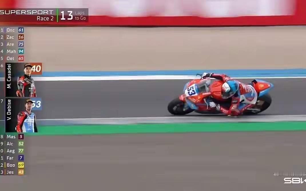 因为,看得出来,德比斯适应了比赛节奏之后,已经开始打算在后面剩下的几圈找机会发力了。上领奖台还是非常有希望的。可惜被提前终止比赛了。