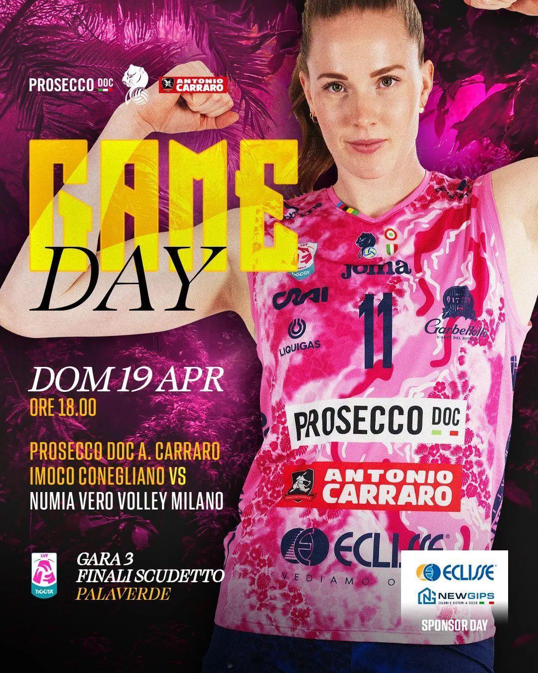 北京时间今晚(明天凌晨)00:00,2025-2026女排意甲 决赛第三场科内利