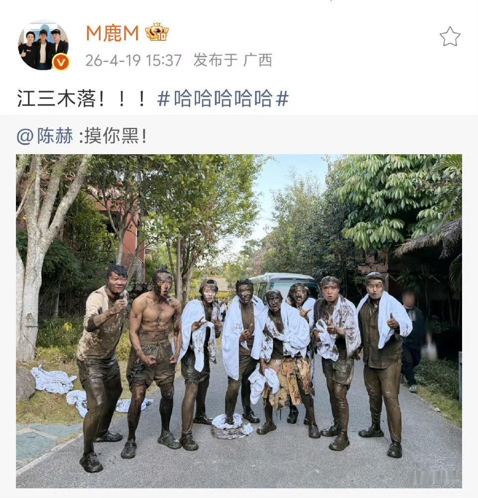 鹿晗黑色果然显瘦鹿晗本身小脸就很优越,这期泥潭大战摔完浑身裹满泥巴,自带天然瘦脸效果,脸直接小了一圈!果然黑色才是显瘦界永远的神,氛围感狠狠拿捏,笑到上头哈哈哈哈哈