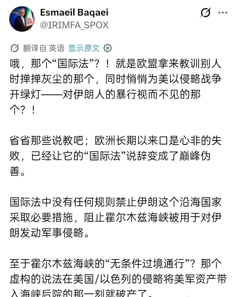 伊朗外交部发言人回应卡拉斯,批评欧盟在“国际法”应用上存在双重标准