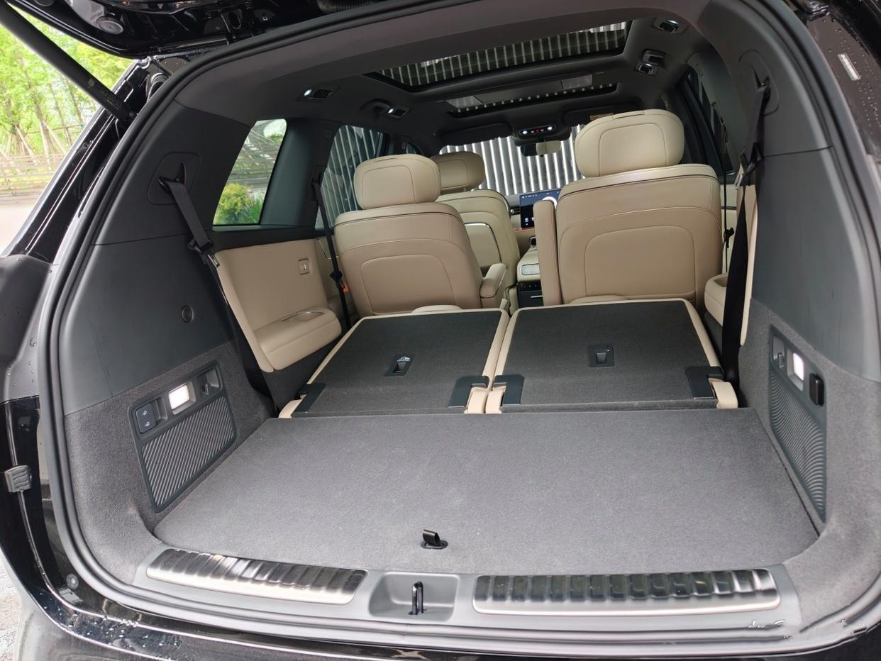 六座满员情况下,后备箱还有423升,再加下沉式储物格,实测放多个登机箱完全没问题。钓鱼装备、婴儿车、行李箱都能装,这对家用太实用。