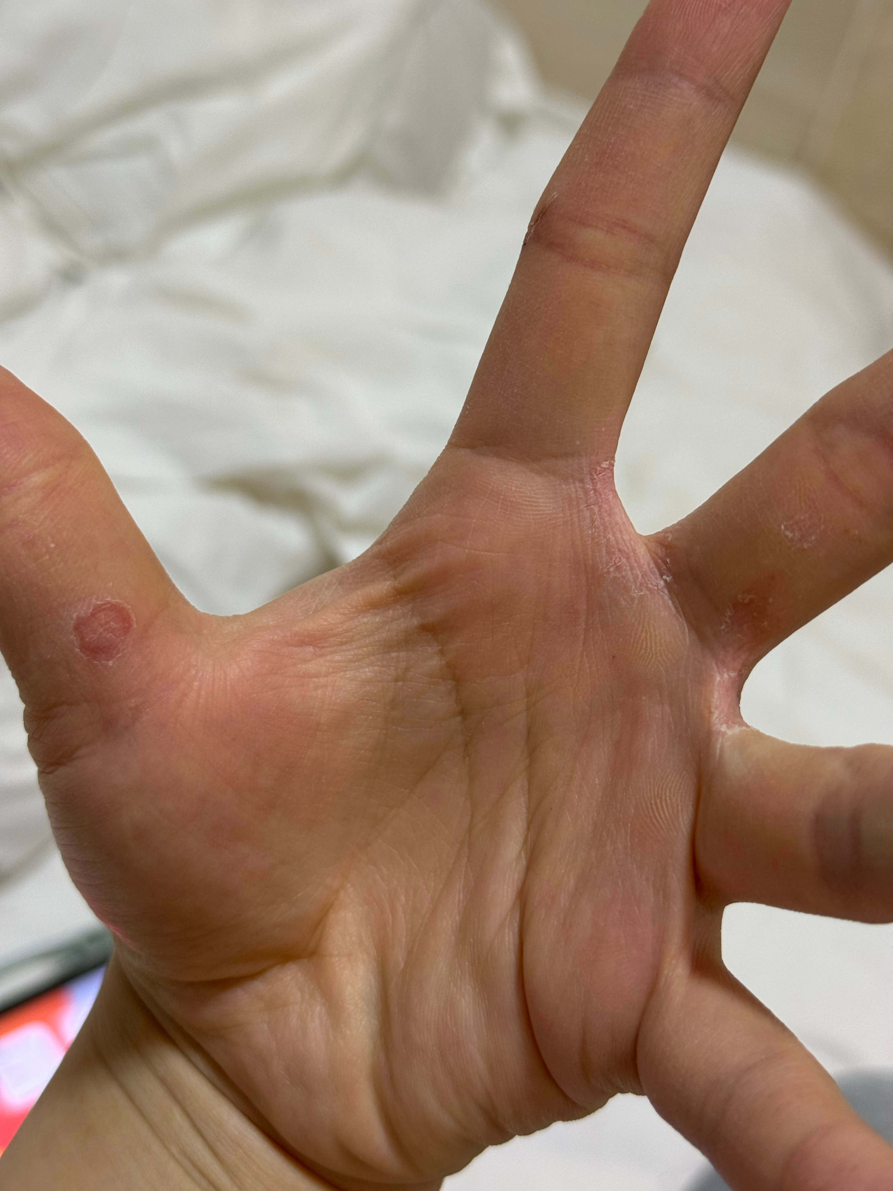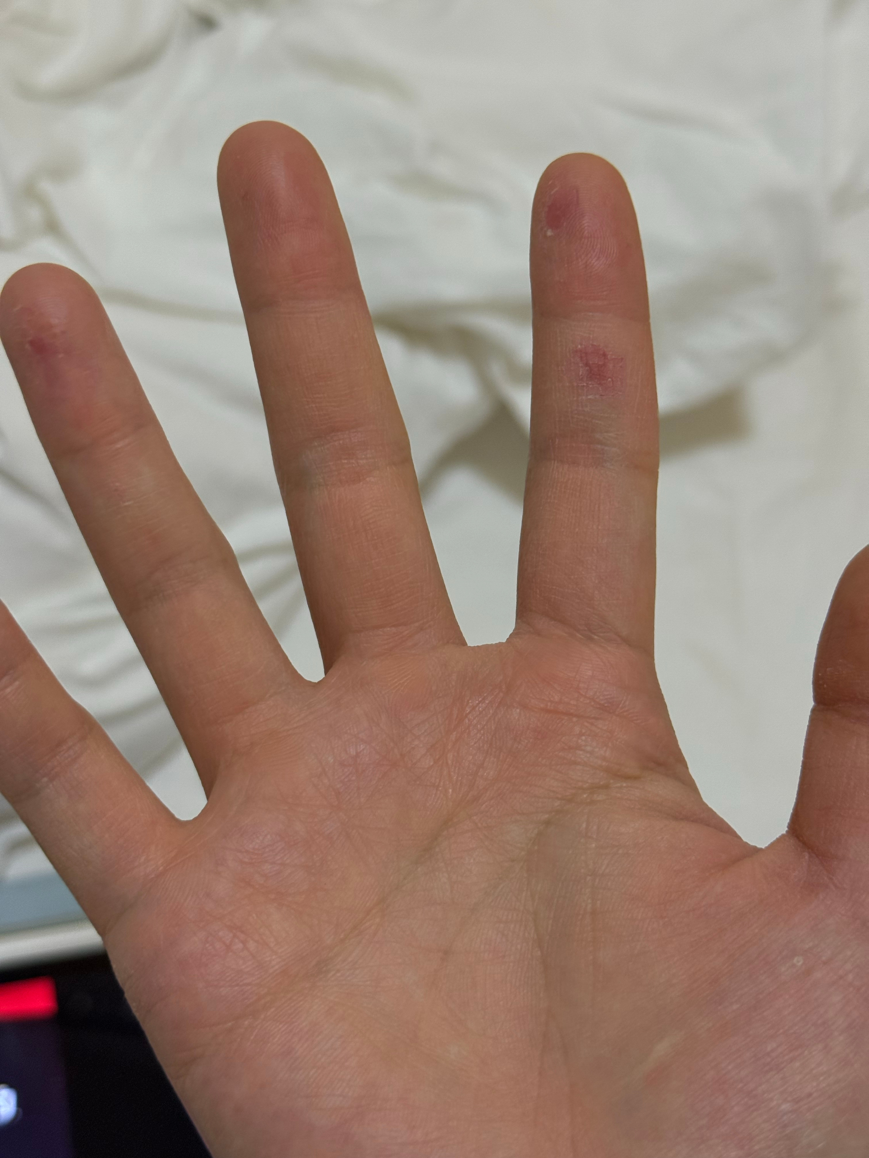 我一到北方我的手就这样 我真的没办法了。都没办法提东西,因为你们看到那个深色的地方已经掉了不止一层皮了。一摩擦就痛的要命