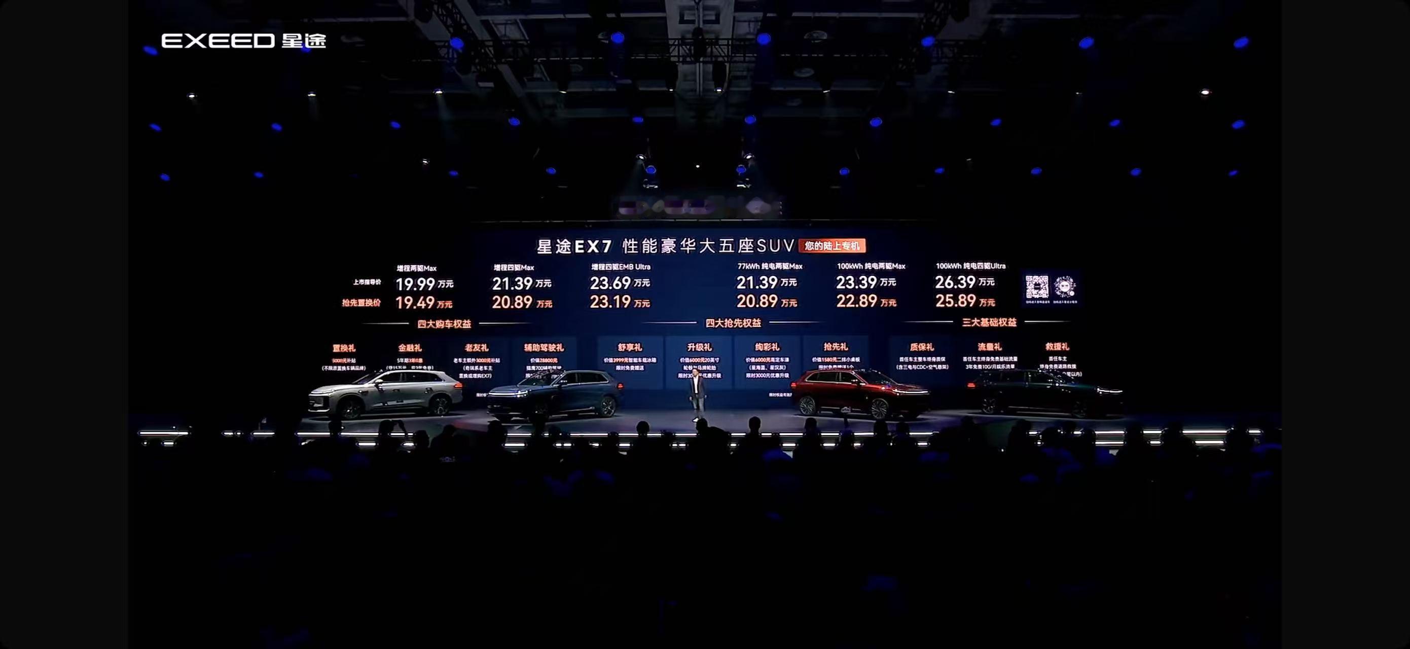 性能豪华大五座SUV星途EX7正式上市 星途EX7价格来啦!真是一点一点给人惊喜呀,这次新车共推出纯电和增程两种动力版本的六款车型,抢先置换价只需19.49万起!