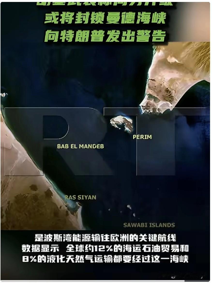 曼德海峡是连接红海与亚丁湾的重要通道,是波斯湾能源输往欧洲的关键航线。数据显示,全球约12%的海运石油贸易和8%的液化天然气运输都要经过这一海峡。