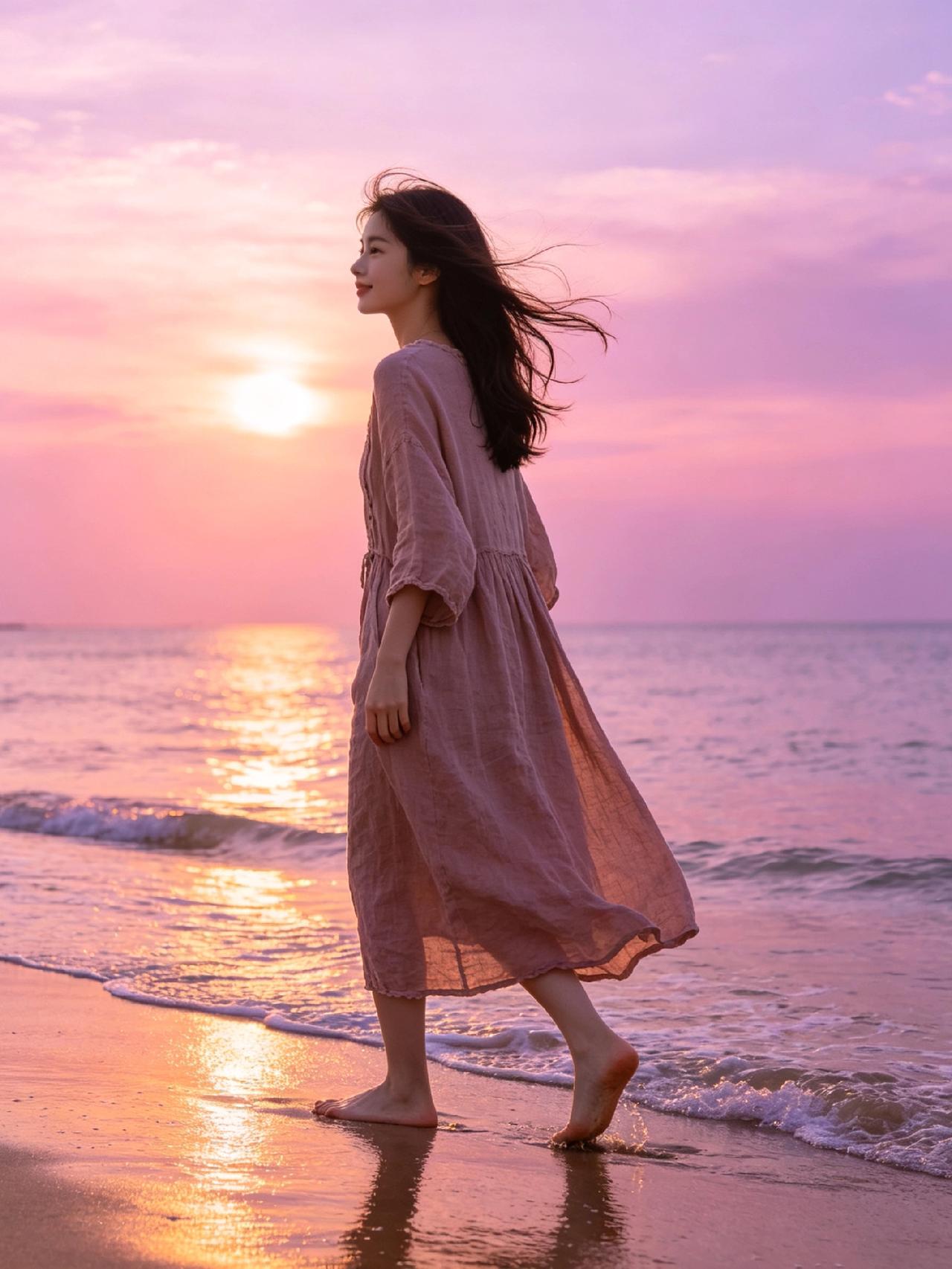 灰衫勾勒从容,素颈承托温柔。发梢轻挽时光,笑意藏于眼眸。不逐喧嚣