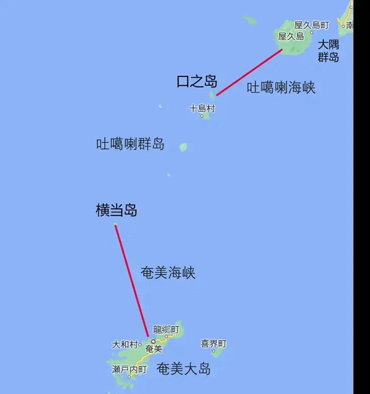 横当水道位于日本奄美大岛与横当岛之间,最大宽度约80公里,连接西太平洋与日本西南诸岛。