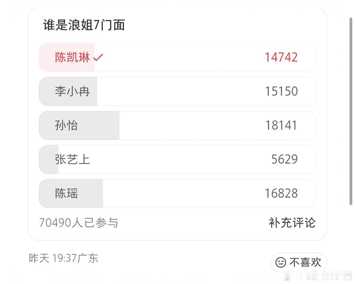 🍠在选浪7门面,目前7w人参与,孙怡领先,陈瑶第二,你觉得是谁