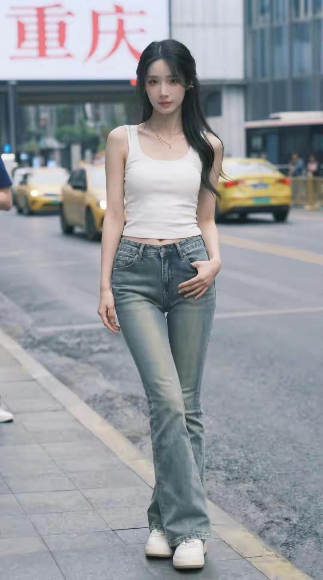 春夏最爱还是牛仔,怎么都穿不厌!阔腿牛仔裤是显瘦神器,搭配白背心、针织衫或衬衫