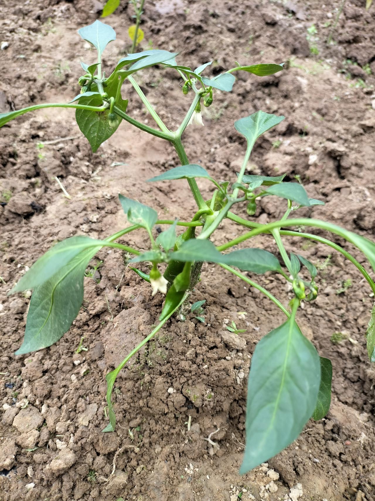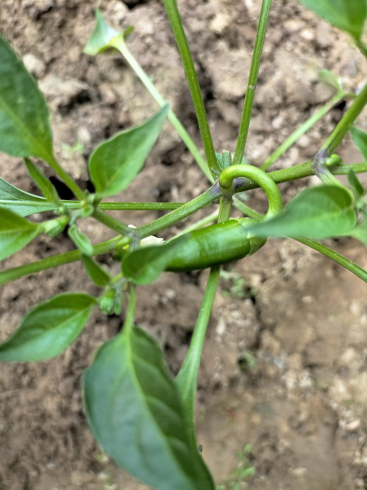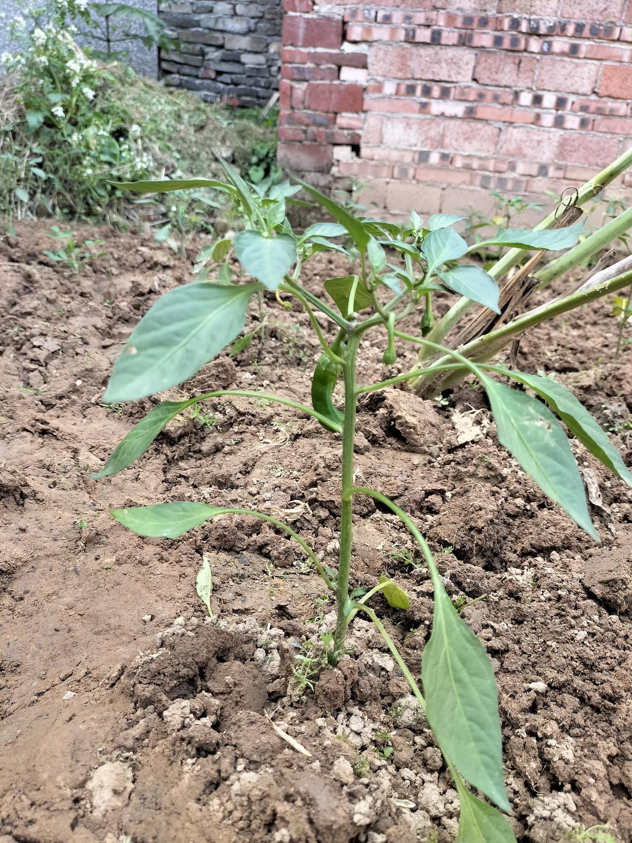 辣椒苗长得不高,矮矮的一棵,但每棵苗都开花结辣椒了,我买到了好苗,是4毛钱一棵。