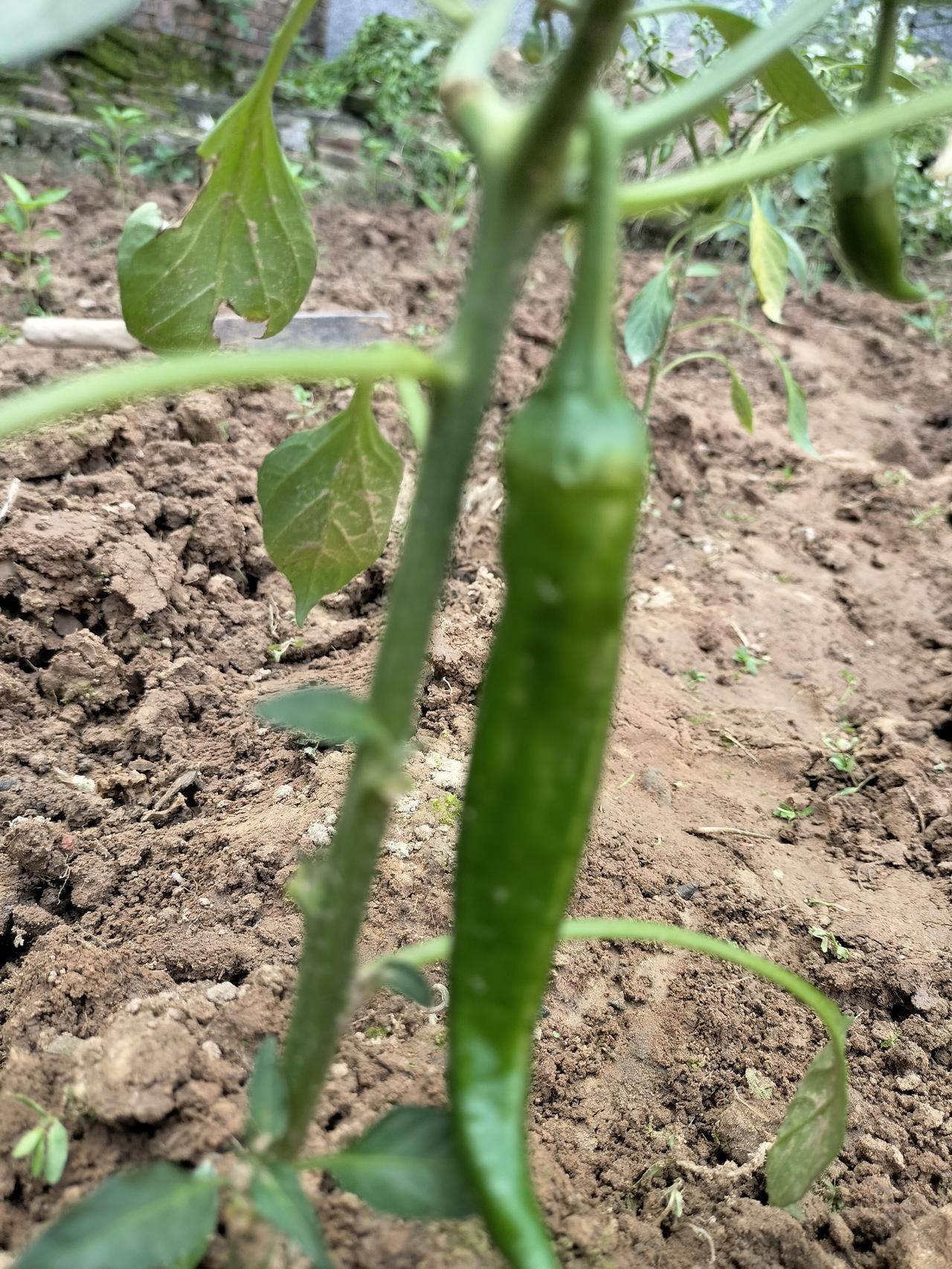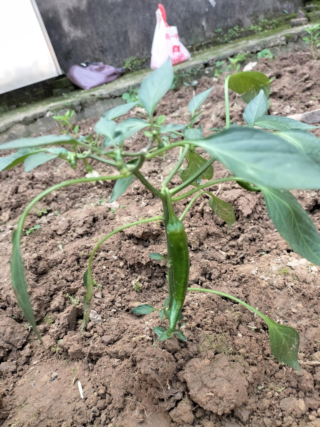 大家快看,我种的辣椒苗长辣椒了,是真的哦,有手指头这么长了,不是租房种的,是我在娘家种的辣椒,真是一份耕耘一份收获啊。