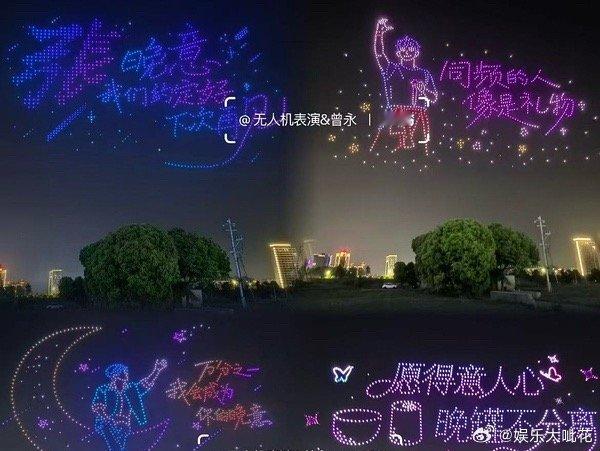粉丝超爱啊给张晚意音乐节弄了1000架无人机应援,这也太浪漫了!而且还有演员的名字,演员粉真的好爱角色啊!