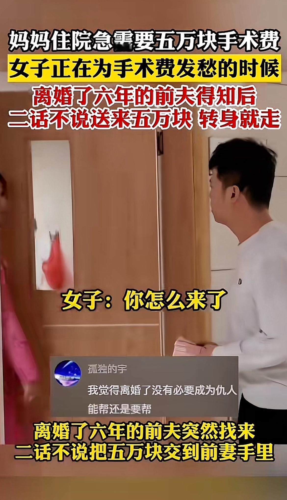 看到“前夫送来五万块,转身就走,感人至深”,让我想起那些复杂的离婚故事。有个湖南女子,离婚3年求复婚,前夫只丢下1万就走。当初她嫌弃老实的前夫,因男领导的示好和虚荣,决然离了婚。结果前夫事业有成,她却丢了工作成无业游民。还有个女子,离婚时前夫甩给她4500万的卡,六年重逢时,前夫看到她牵着俩孩子傻了眼。前夫送钱,或许是念着旧情,又或许是想做个了断。感情的事,真的很难说清,希望大家都能珍惜眼前人啊。