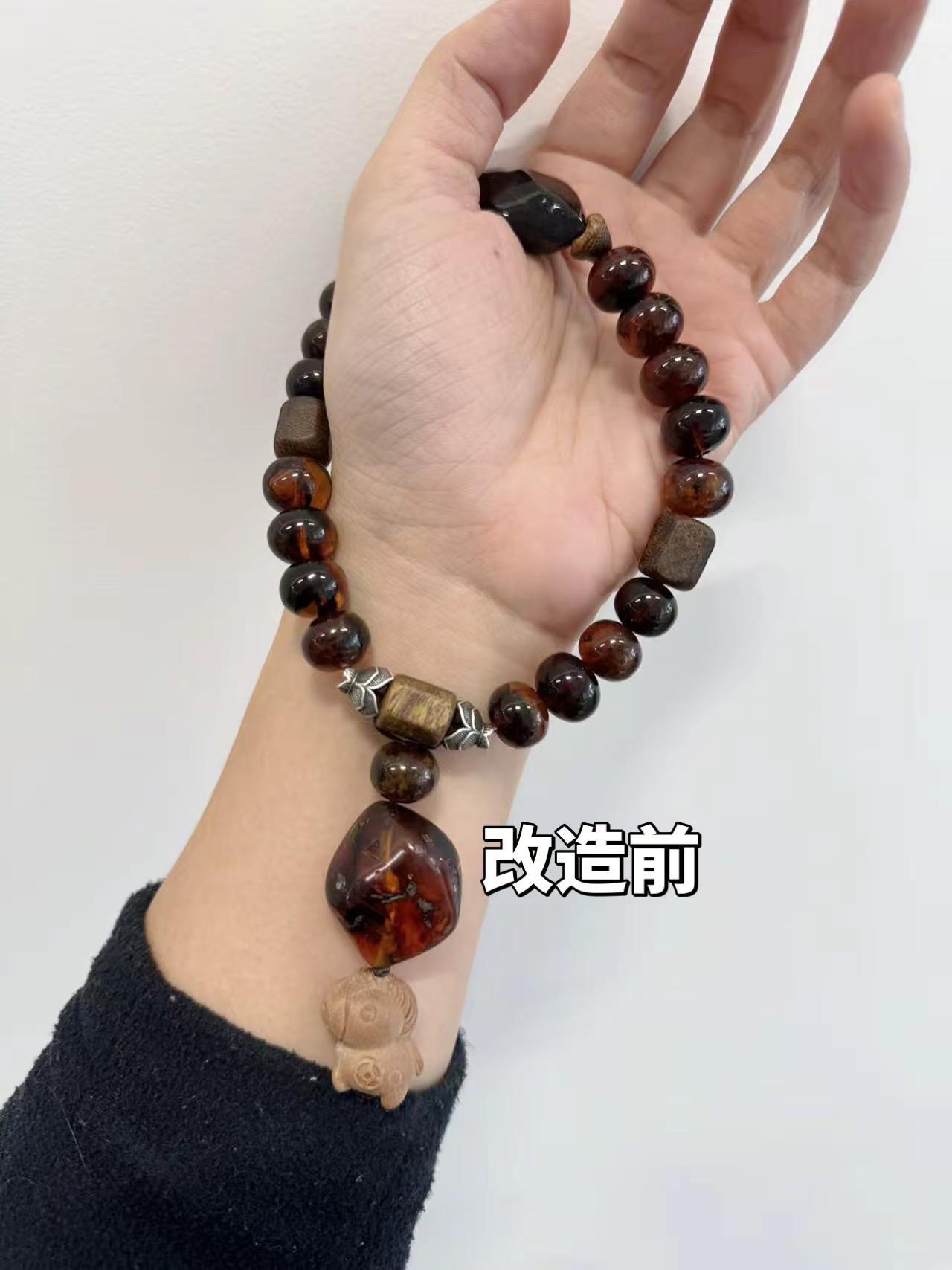 抚顺琥珀手串改头换面 可以摇滚了原创手串