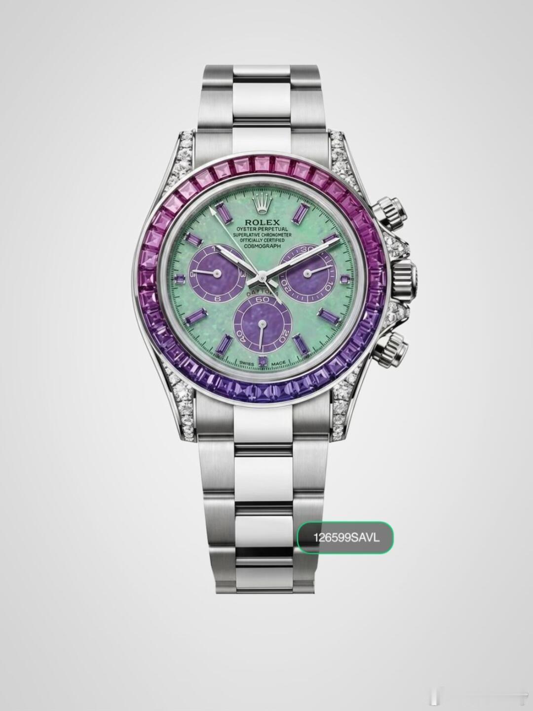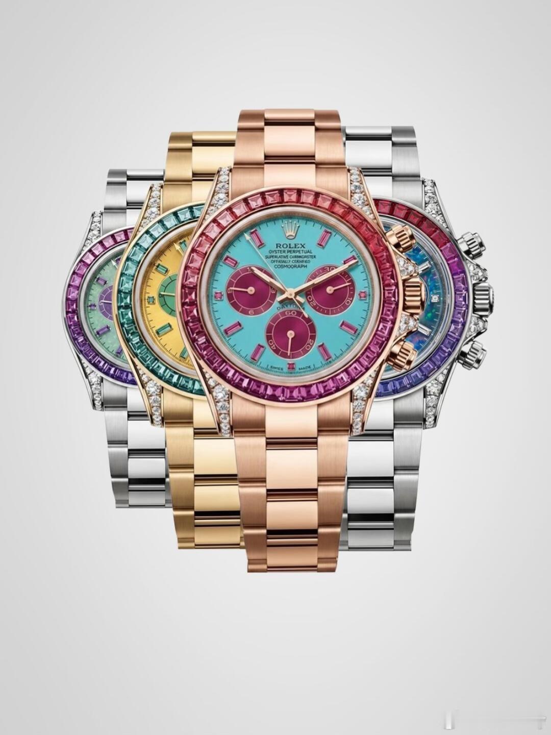 钟表与奇迹2026 2026钟表与奇迹展,劳力士没声张,却甩出全场最狠一枚炸弹:一套四枚的宇宙计型迪通拿限量套组,总价480万美元。每一枚都以天然珍稀石材为表盘,表圈铺陈渐变彩色宝石,表耳密镶钻石。高饱和色彩碰撞,将高级珠宝的视觉冲击力,与迪通拿经典运动美学大胆融合。不量产、不公开宣传、不对外发售,仅定向邀约顶级藏家。从机芯到宝石镶嵌,全是劳力士最高工艺标准。这不是腕表,是可佩戴的顶级珠宝艺术品;不是商品,是金字塔尖的收藏传奇。劳力士一出,再定义什么叫“极致奢华”。高手带路看表展钟表与奇迹制表工艺