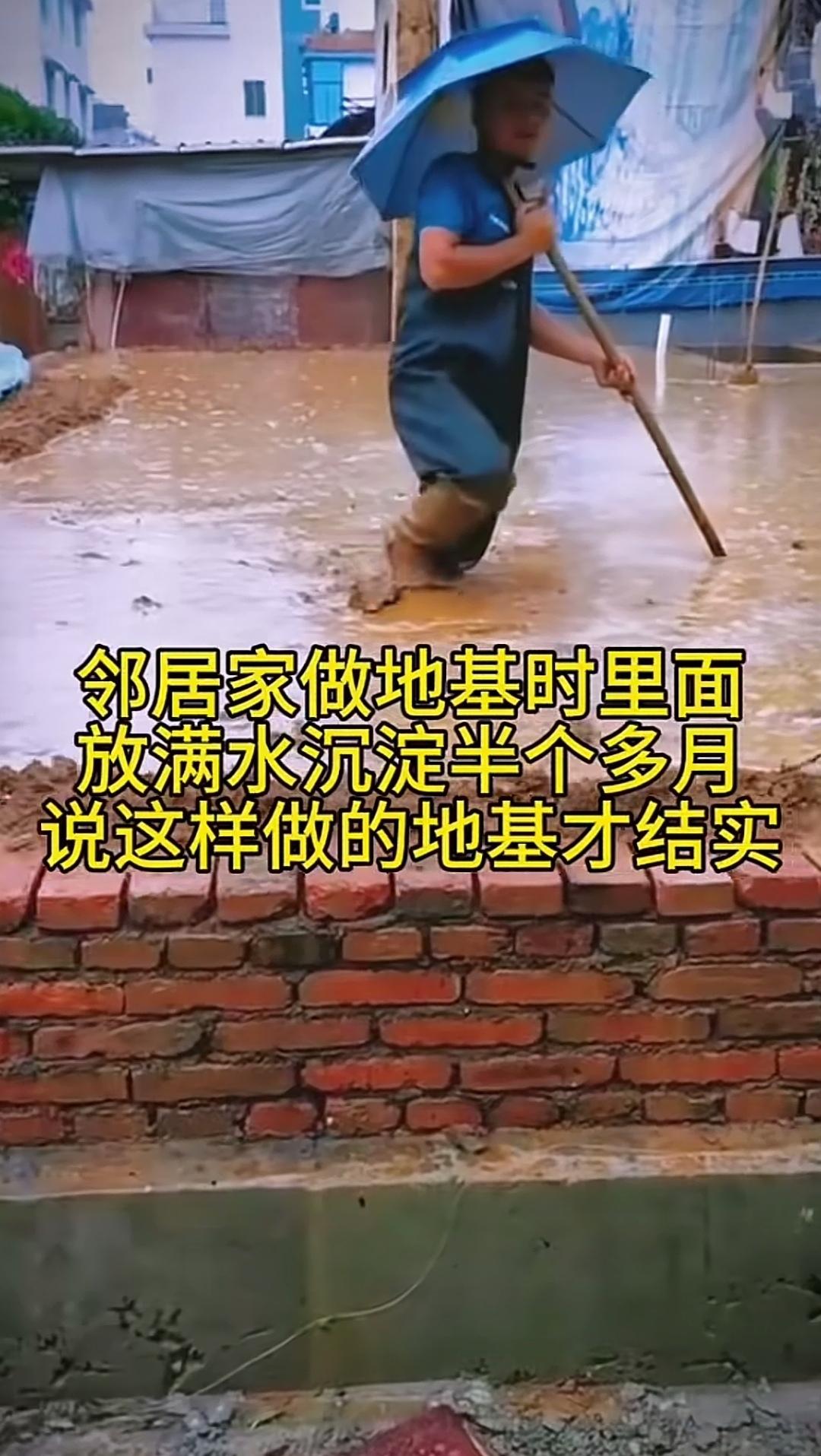 瞧瞧画面里的场景,这位邻居正在对地基上的回填土进行沉淀处理。这种做法在农村颇为常见,有些人还会放水让回填土沉淀半个月。然而,时日一久,地面依旧会出现下沉的现象。