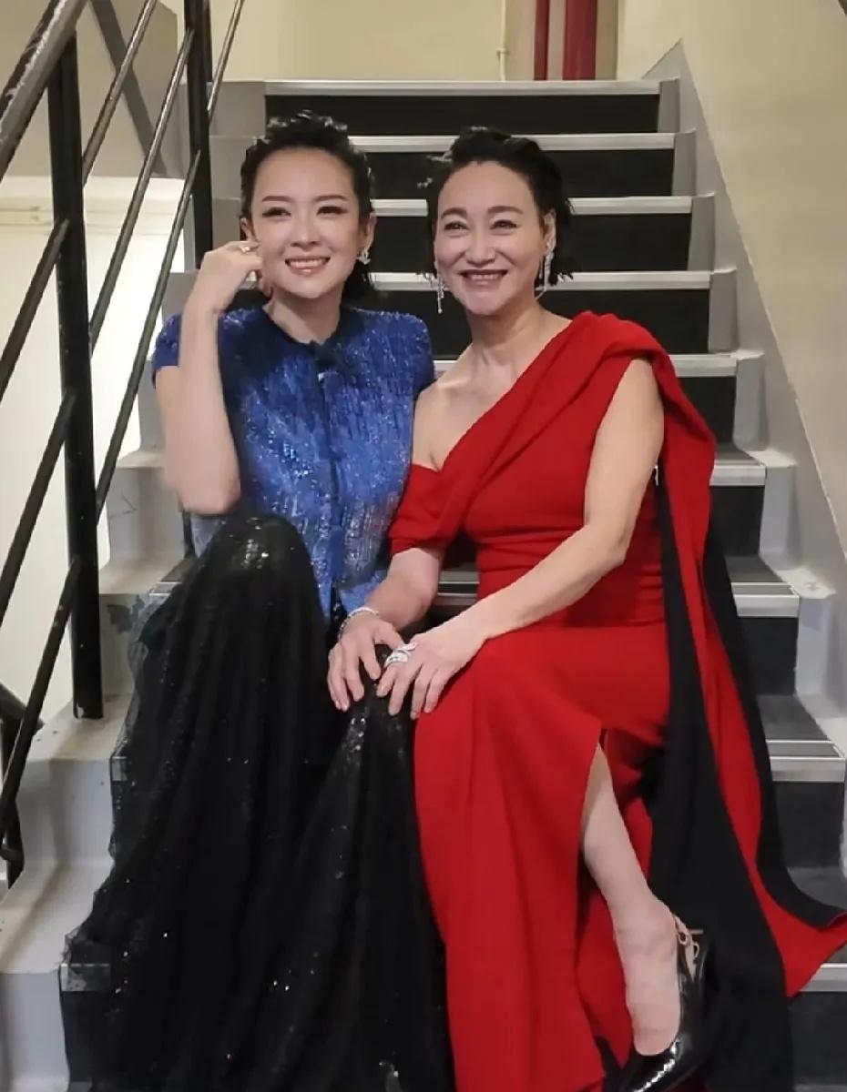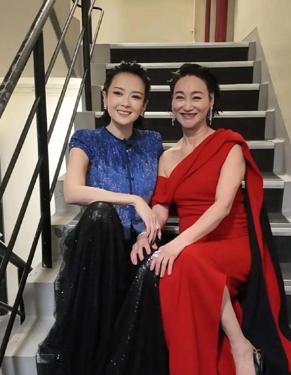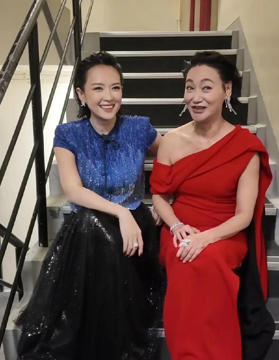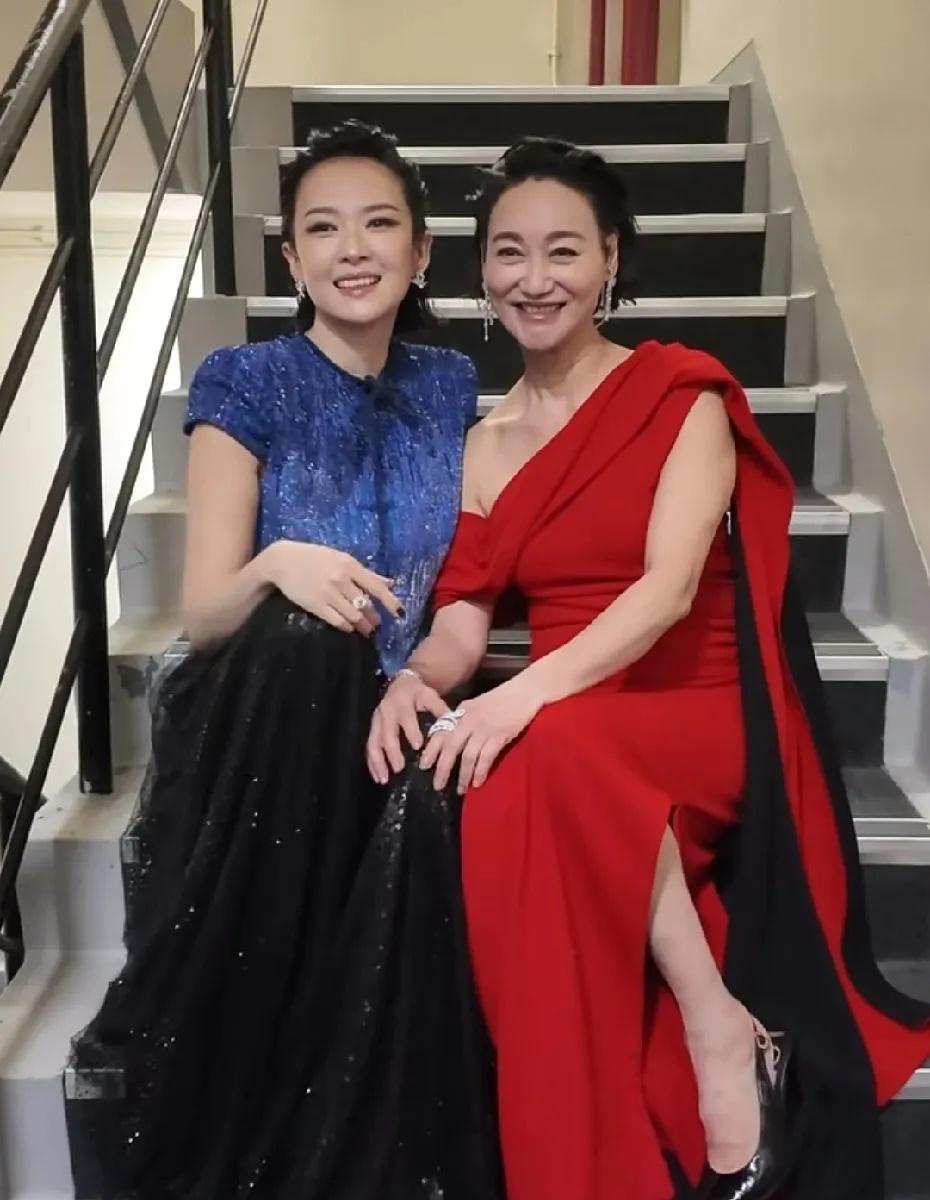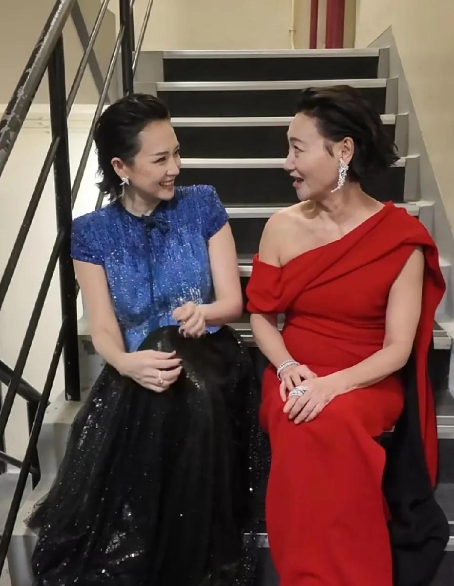 章子怡惜败新人廖子妤未获奖,却与惠英红楼梯间开心合影。