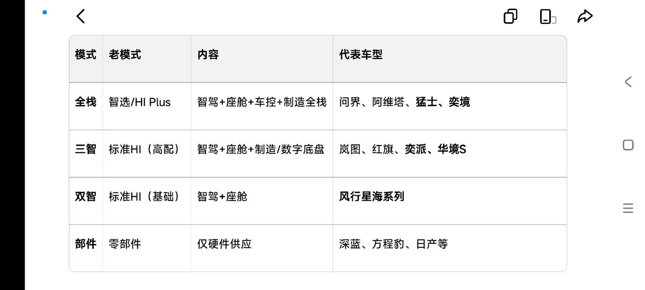 全栈 智选/HI Plus 智驾+座舱+车控+制造全栈 问界、阿维塔、猛士、奕境