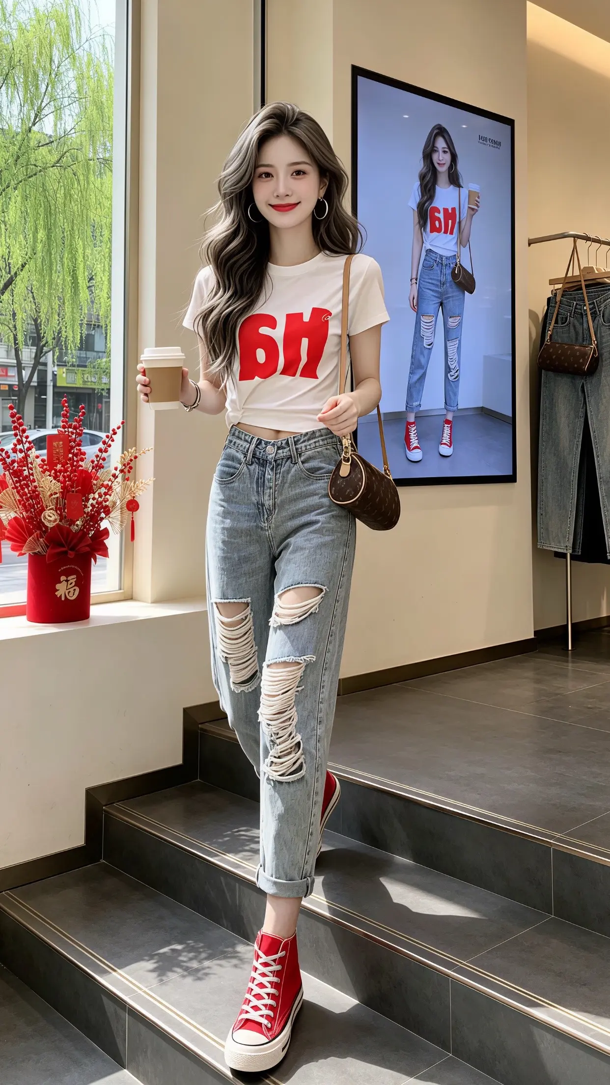 春季衬衫怎么穿时髦不无聊?同一件衬衫,搭牛仔裤+运动鞋略显普通,换了思路:用白