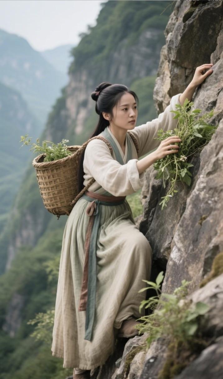 上联:树下吟诗月相伴 下联:崖边采药云随影
