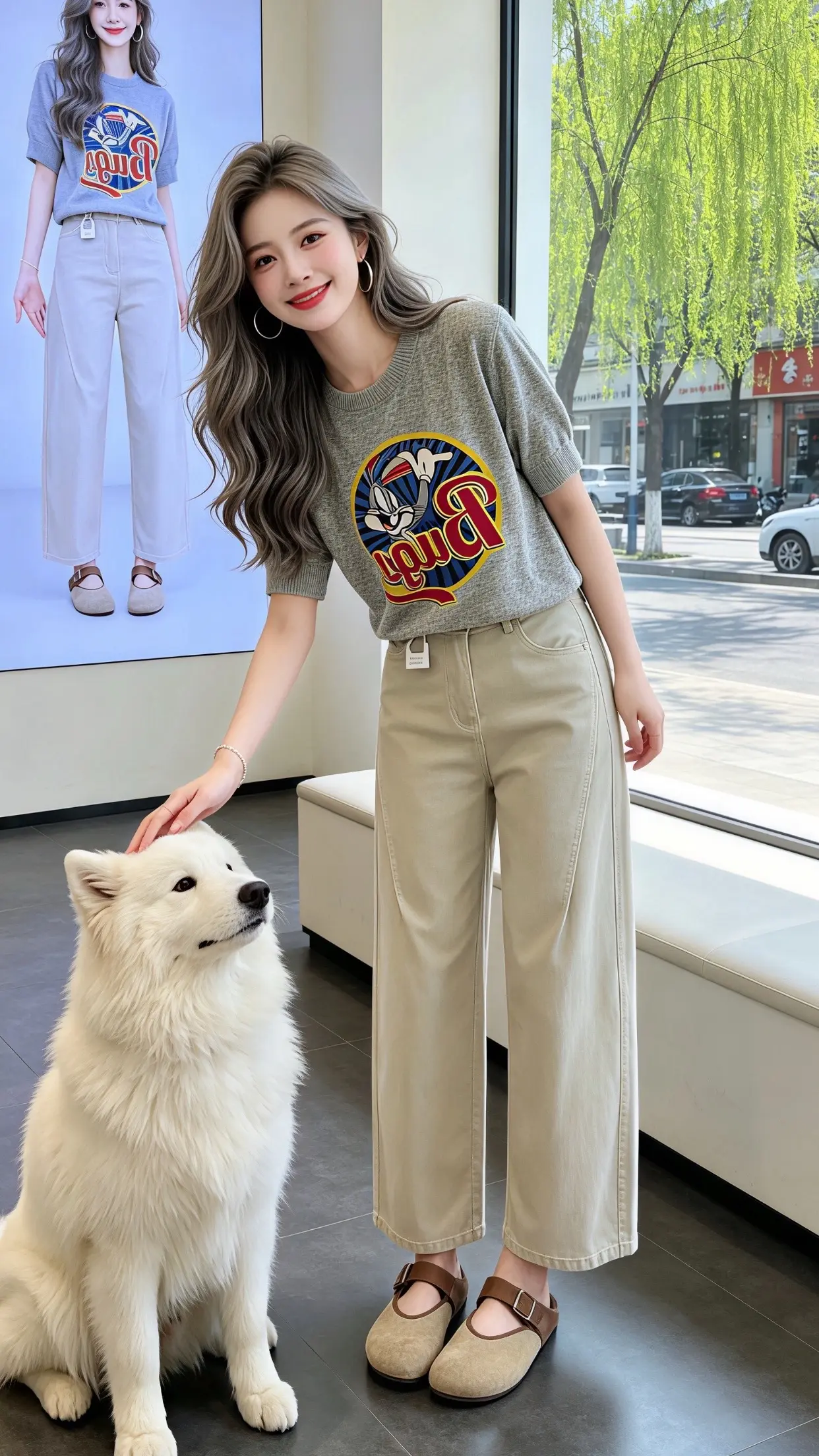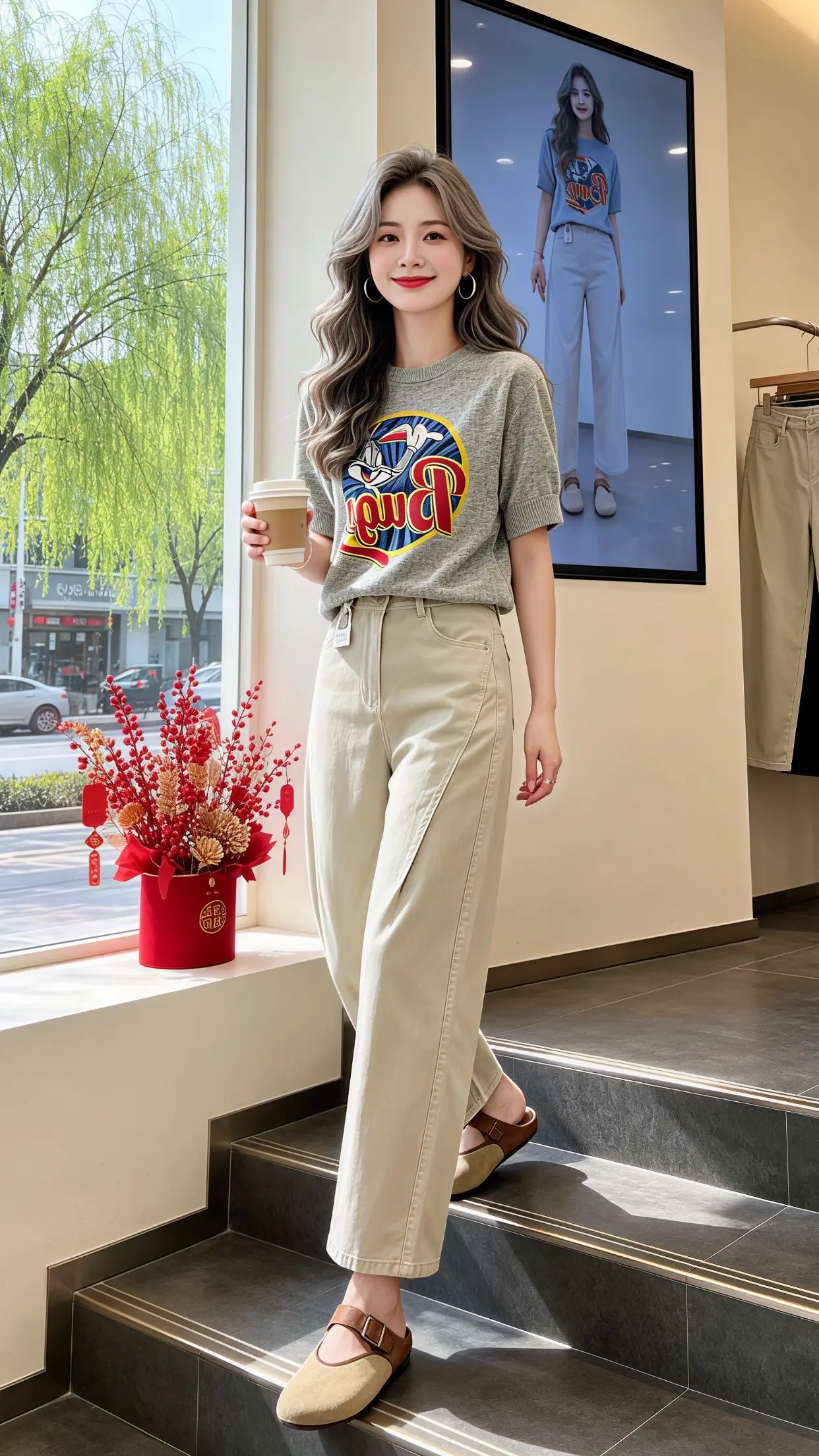 阳光下的甜美笑容,白色衬衫与牛仔裤的完美搭配,尽显自然与优雅。
