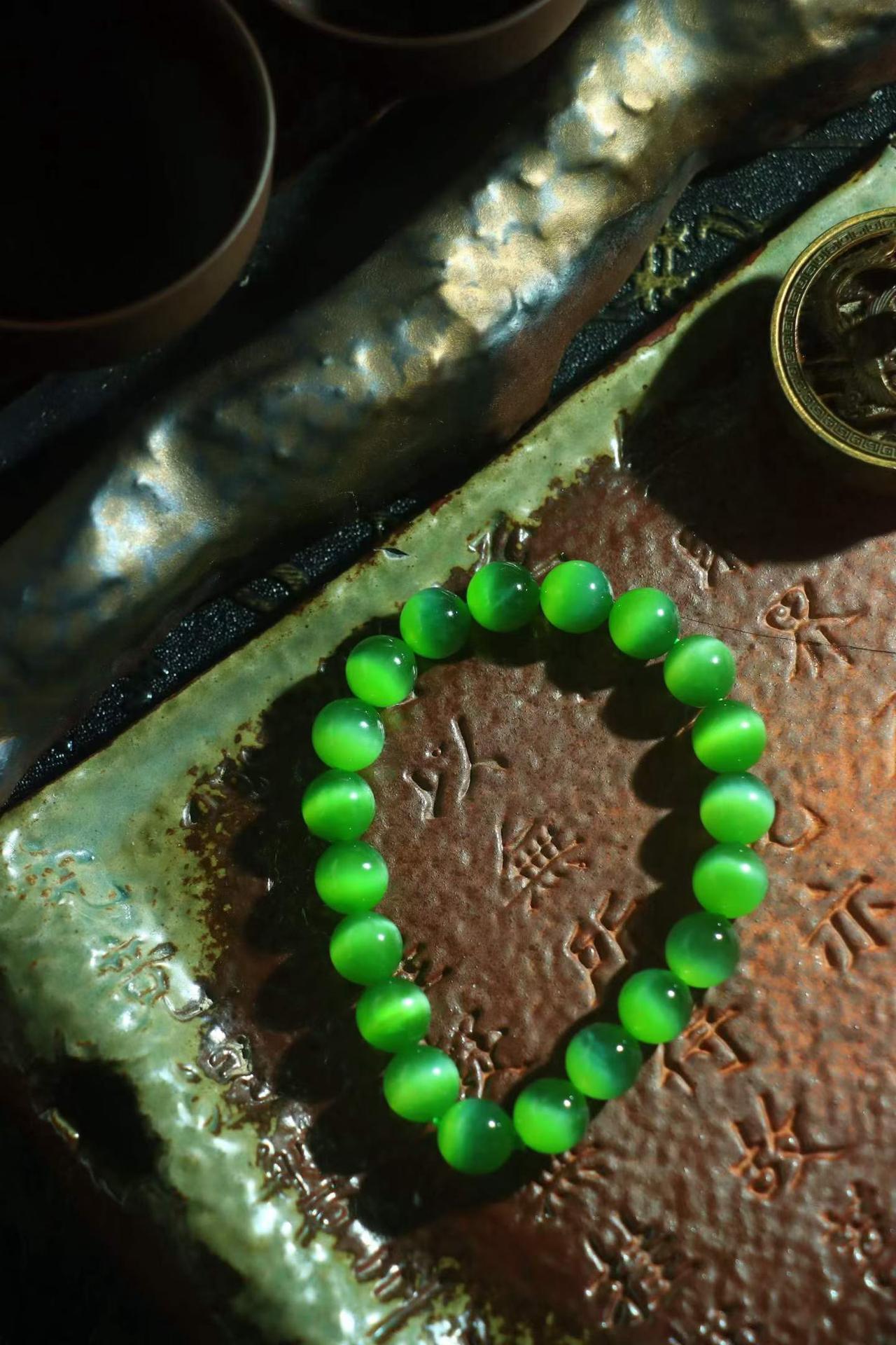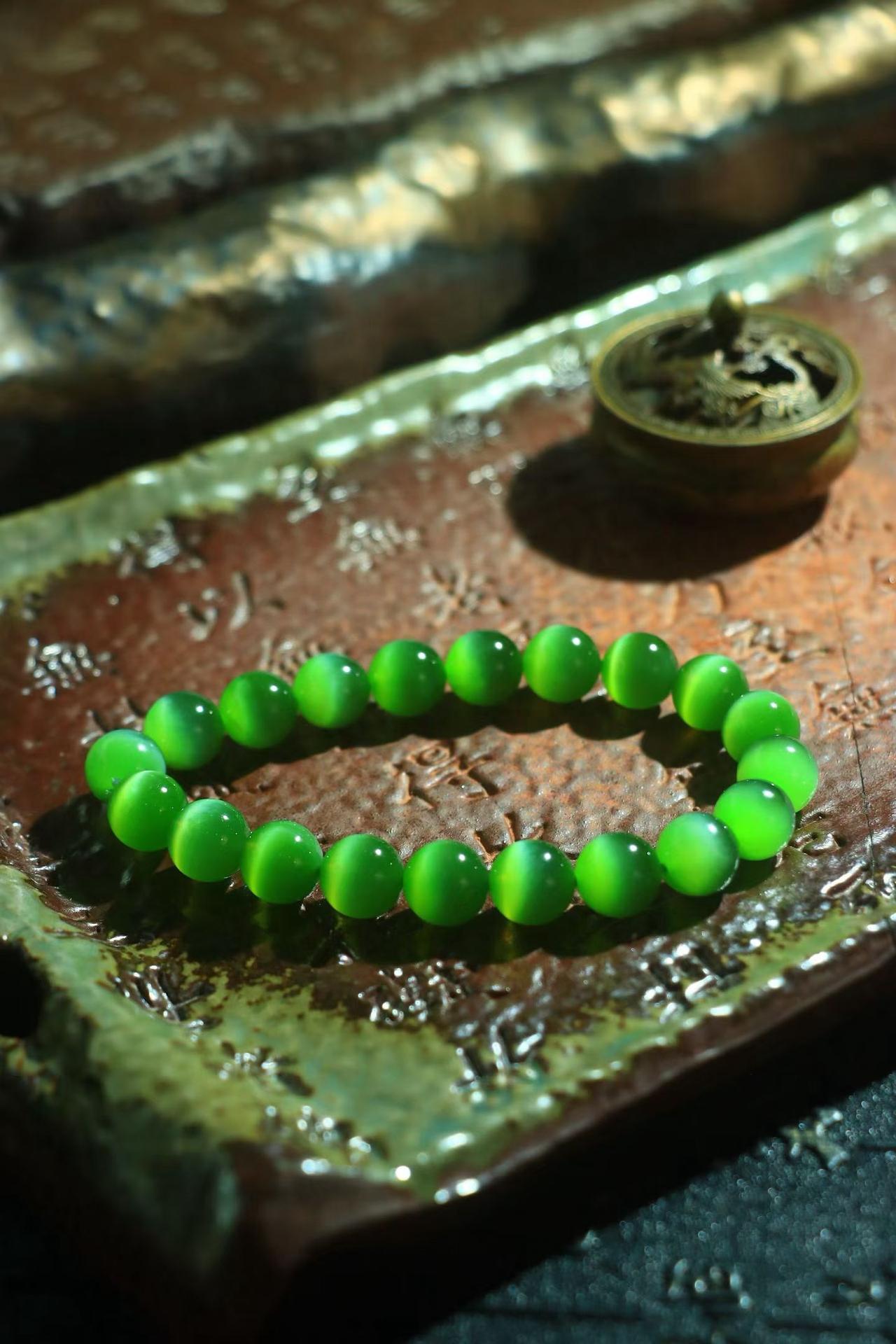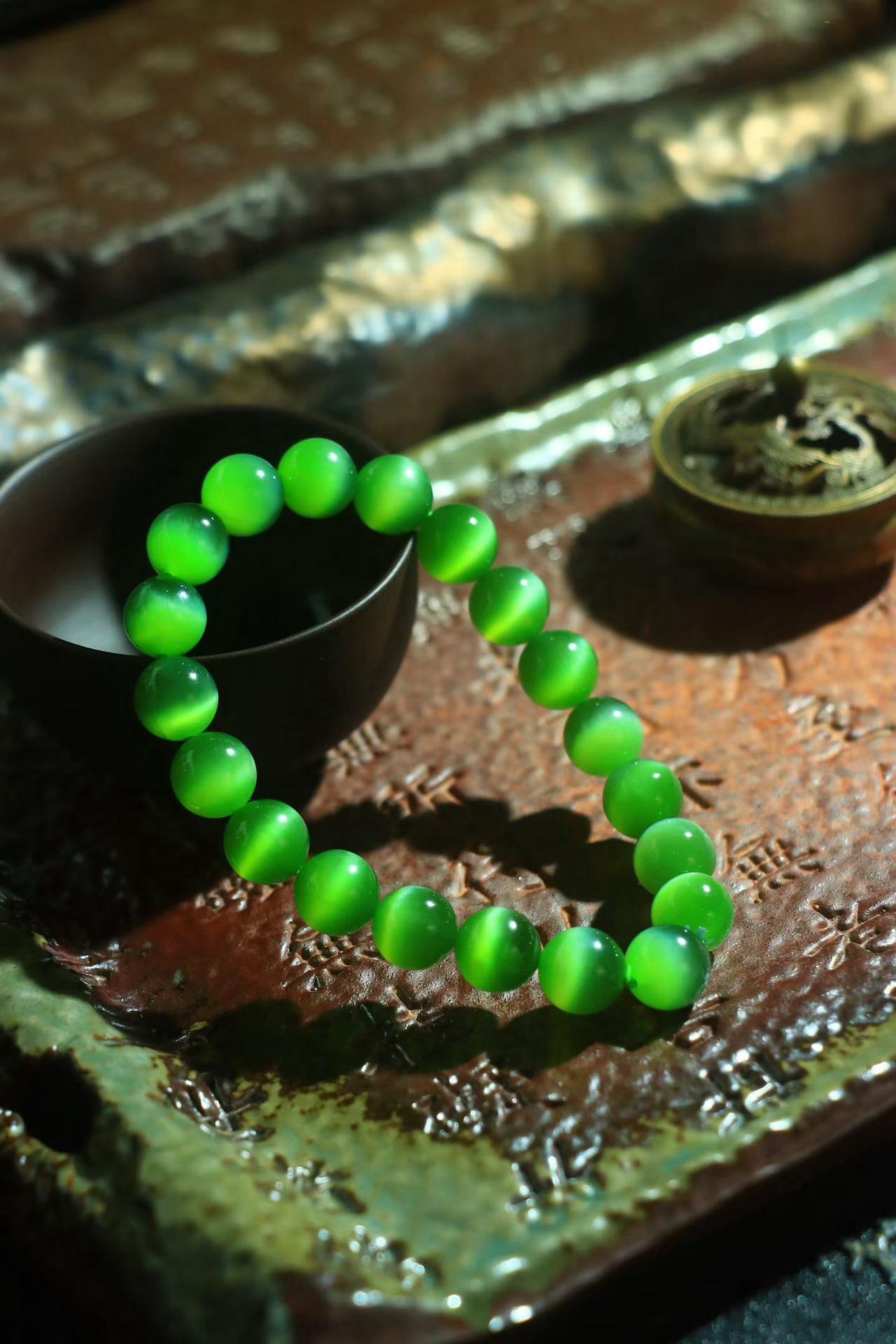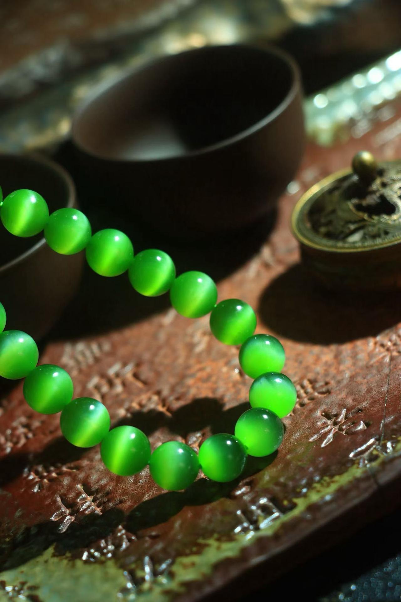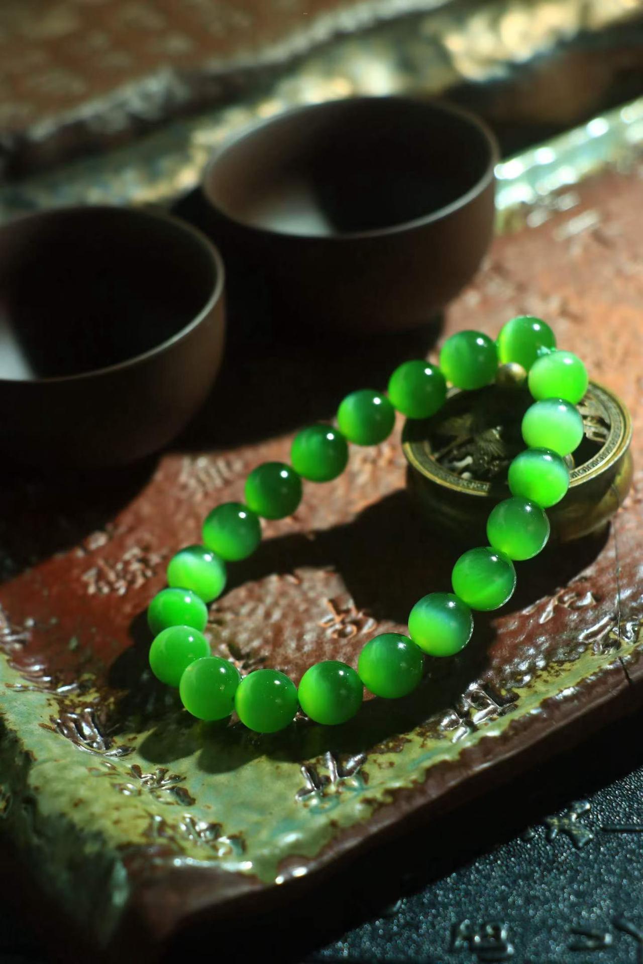 精品和田玉老坑猫眼碧玉手串,玉质细腻油润,颜色浓艳大气,玉珠饱满,整个流露出高级感!各种光线下都充满质感。饱满光滑 质朴无华,悠远简单,人心境界远,百世修炼深,心灵常驻善意持,觉悟人生百世修。👍很值得收藏甚至传承。