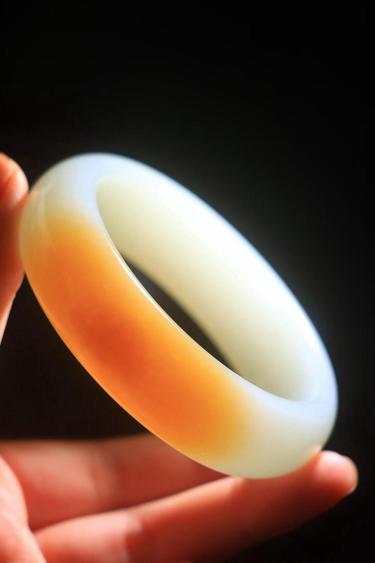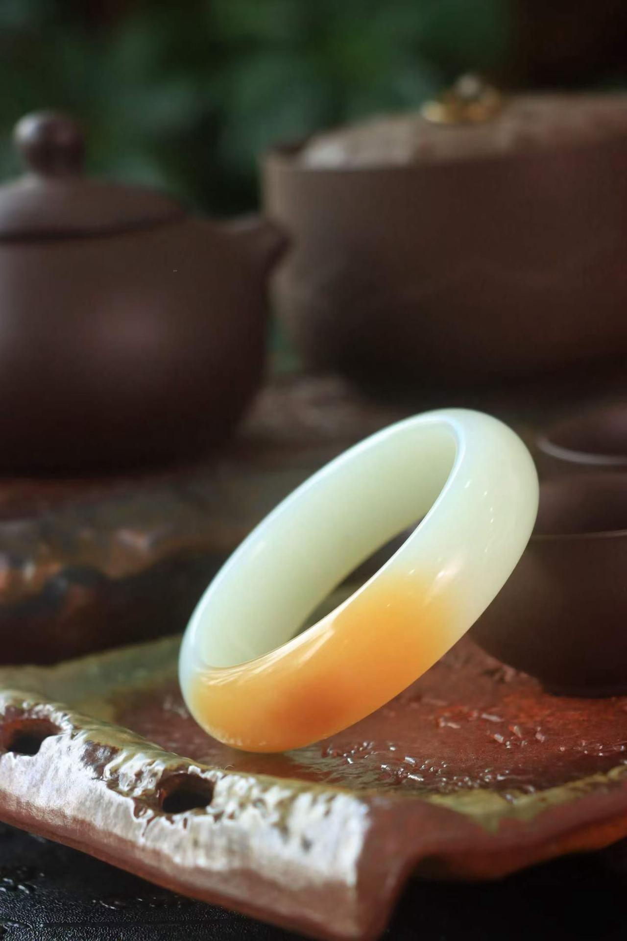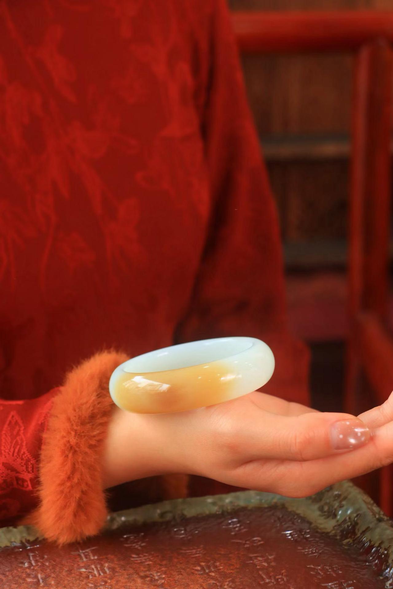 ·〈芳年华月 玉镯〉 精品玉镯❤️ 新疆和田糖白双色玉镯,佩戴高贵优雅~色泽怡人,干净均匀,温润素雅,完美品相自然呈现,精细打磨,更见和泽光辉,恰如大家闺秀,温雅持重🍁 规格:宽19厚9.4圈口58.5重86.7