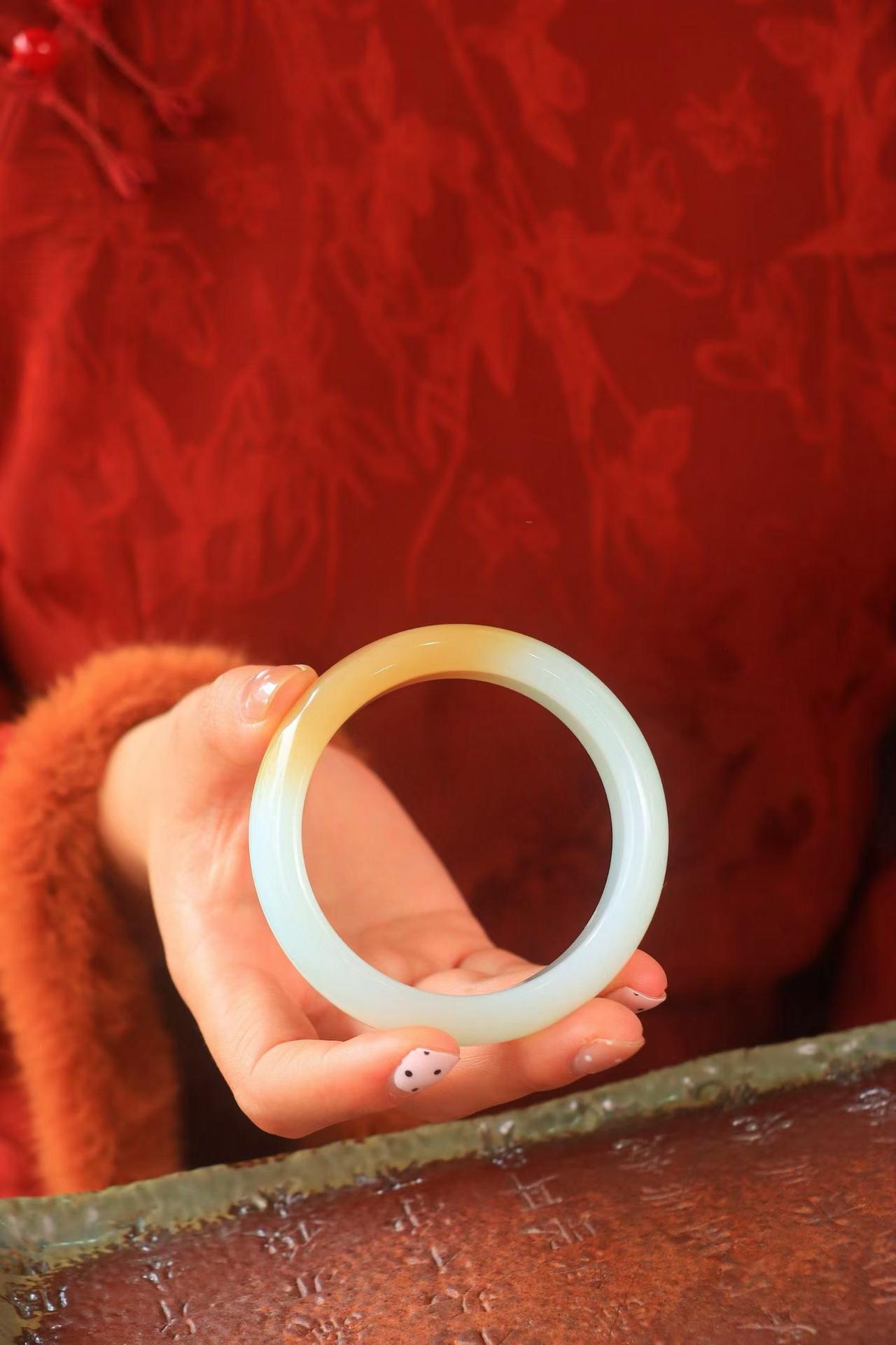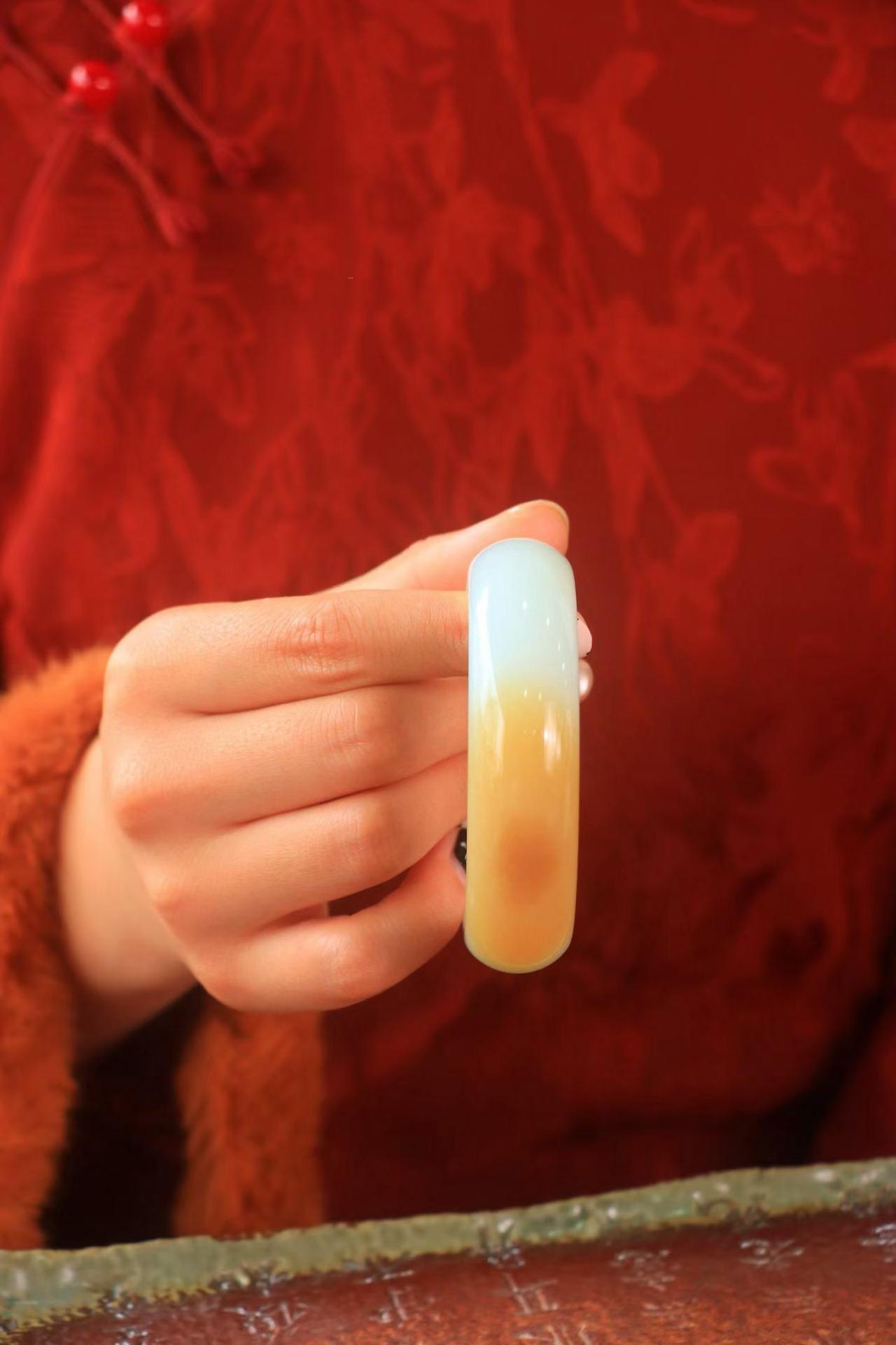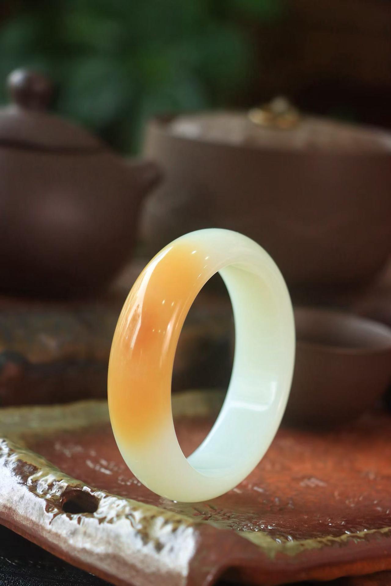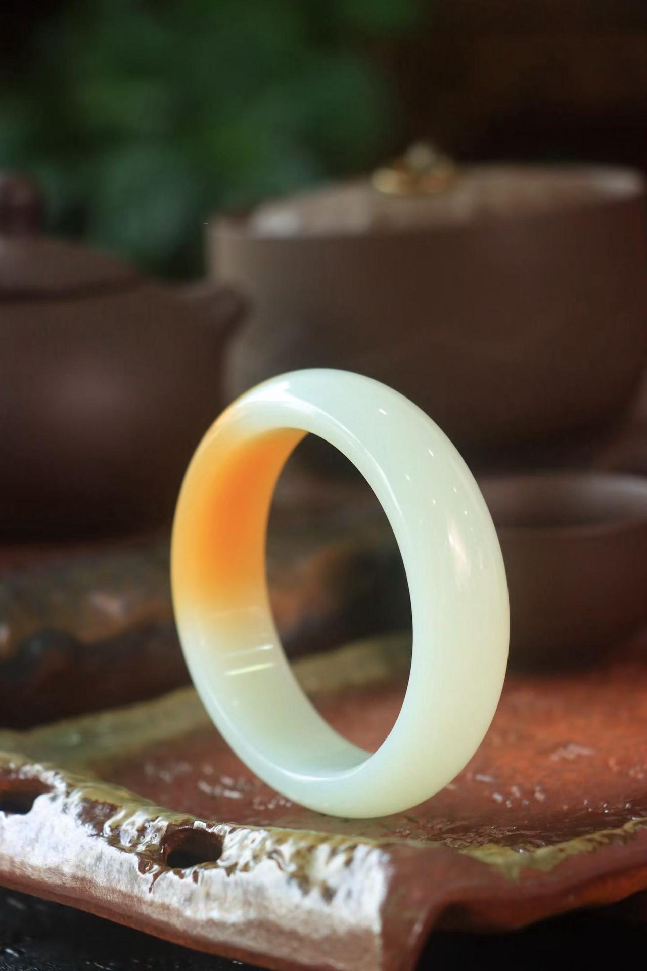 ·〈芳年华月 玉镯〉 精品玉镯❤️ 新疆和田糖白双色玉镯,佩戴高贵优雅~色泽怡人,干净均匀,温润素雅,完美品相自然呈现,精细打磨,更见和泽光辉,恰如大家闺秀,温雅持重🍁 规格:宽19厚9.4圈口58.5重86.7