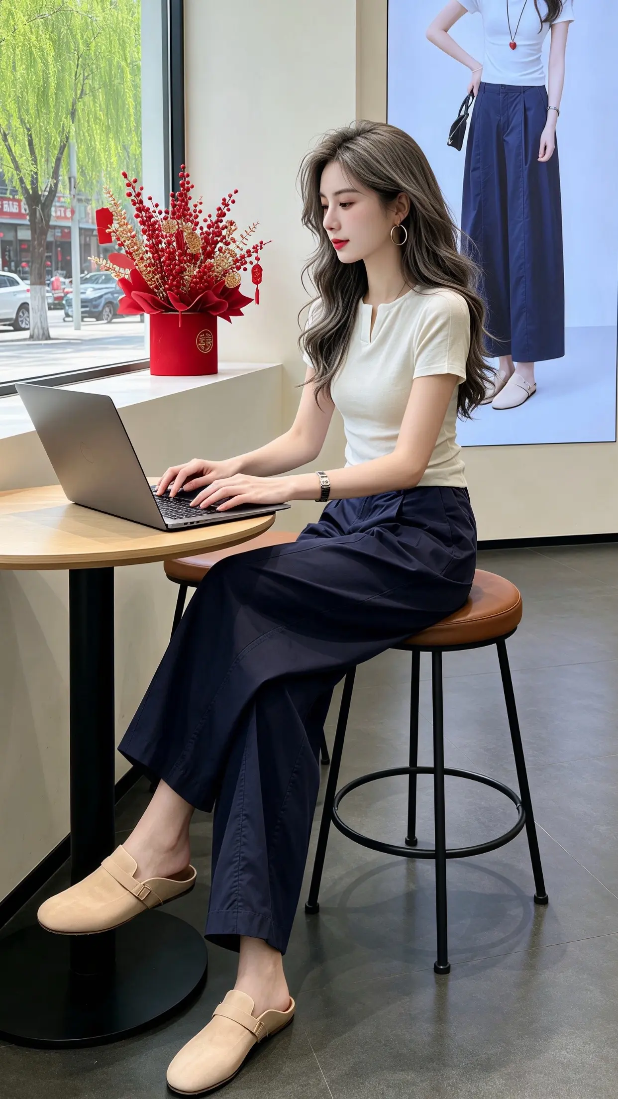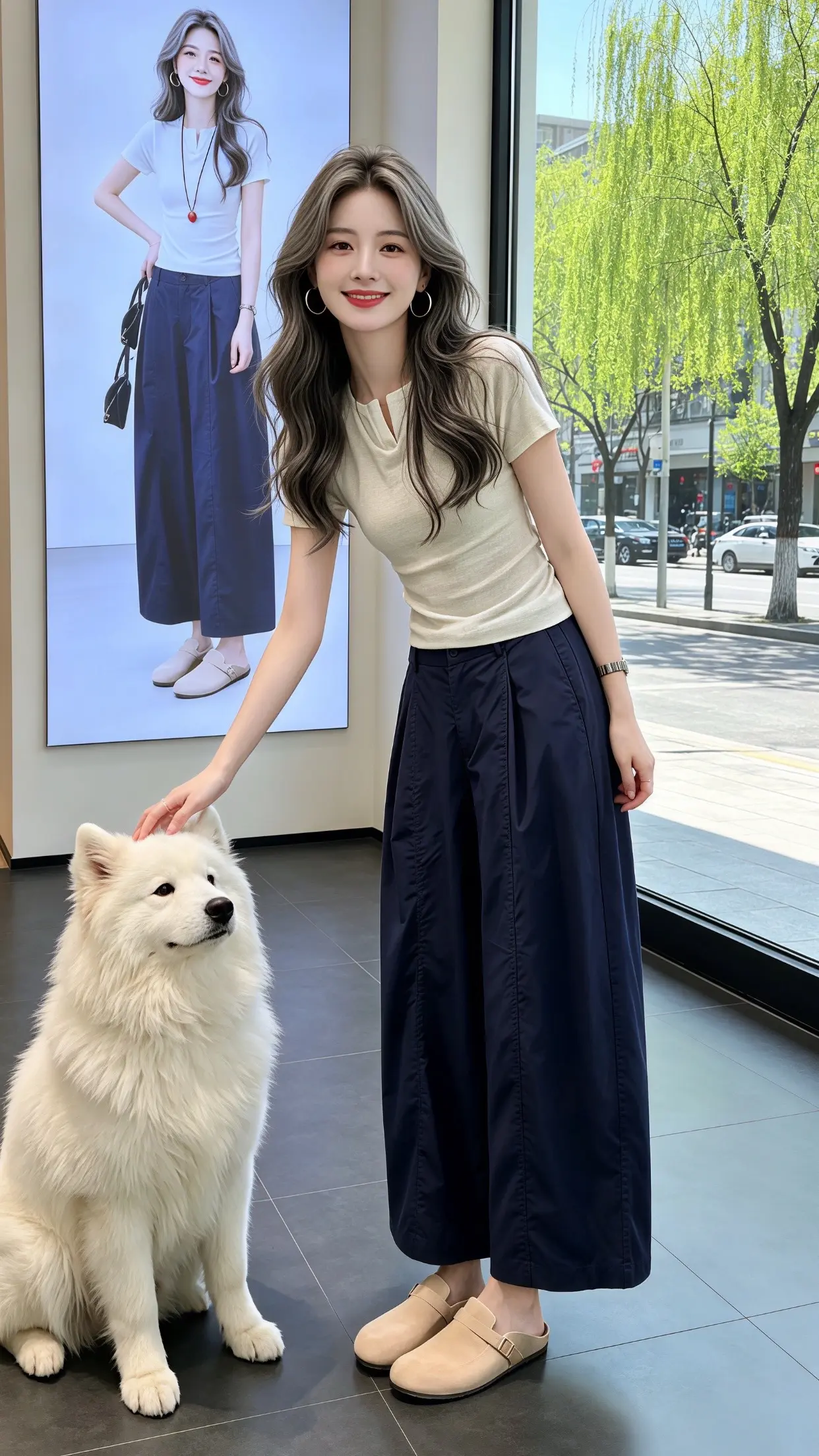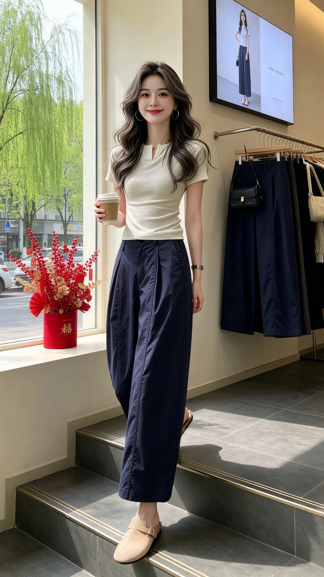 吴越的穿搭真的太适合中年女性抄作业了!宽松衬衫+高腰阔腿裤,遮肉显瘦同色系搭