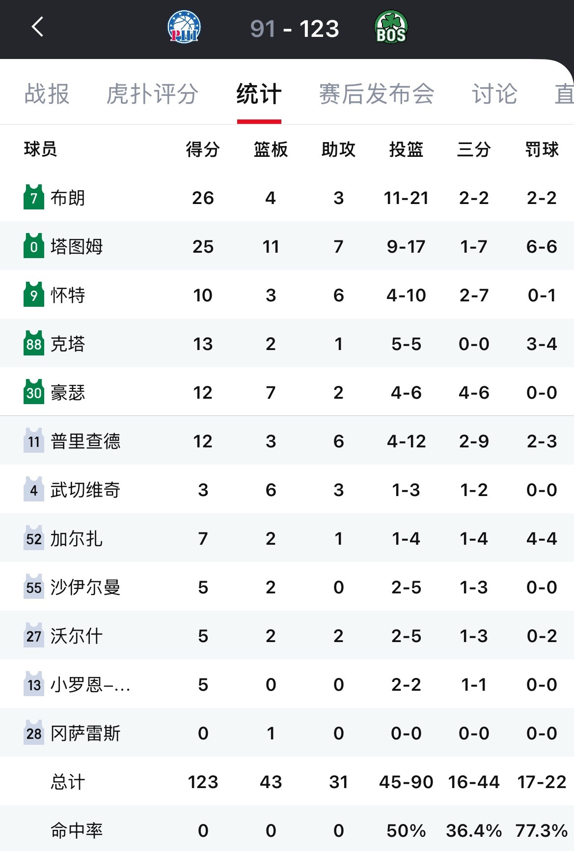 早场的比赛都没有什么悬念,凯尔特人和雷霆均取得大胜👀76人vs凯尔特人太阳vs