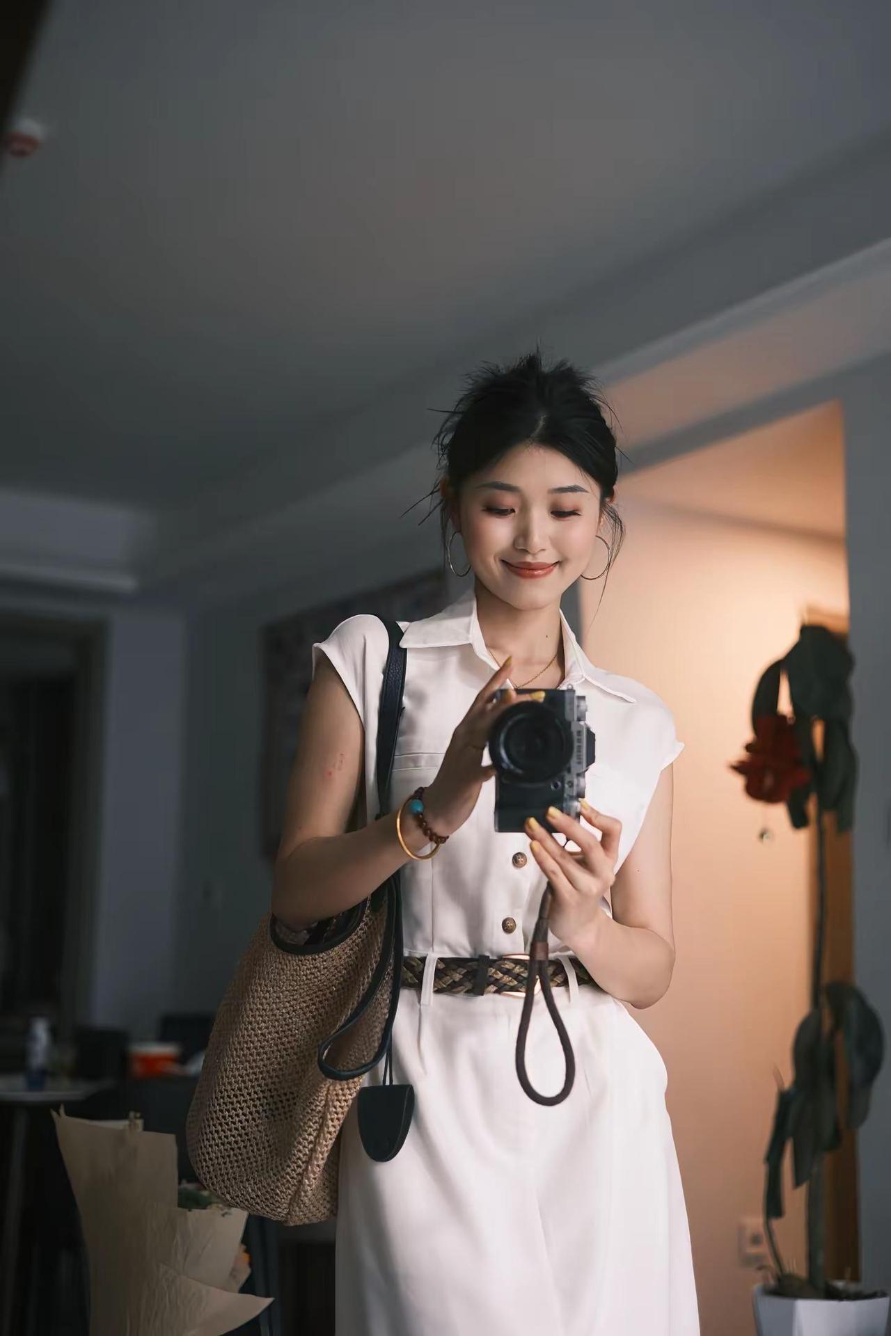 柔美漂亮的衬衫吊带裙