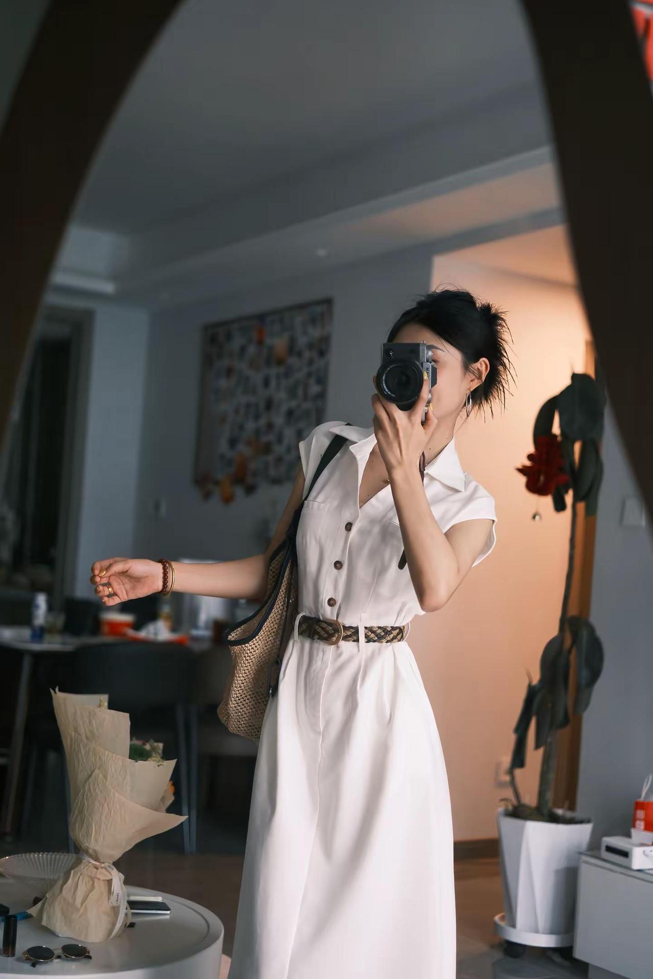 越来越喜欢简单款的衣服~极简白色连衣裙 港风白色衬衫连衣裙