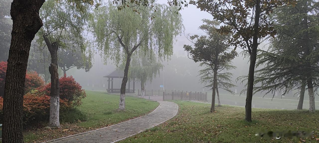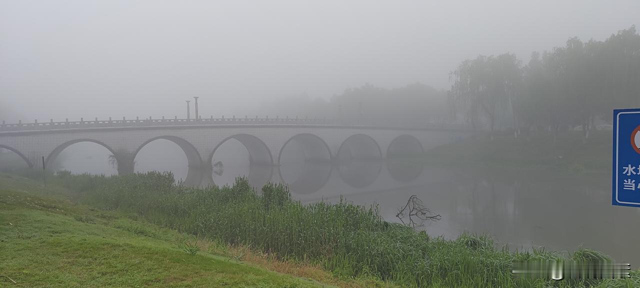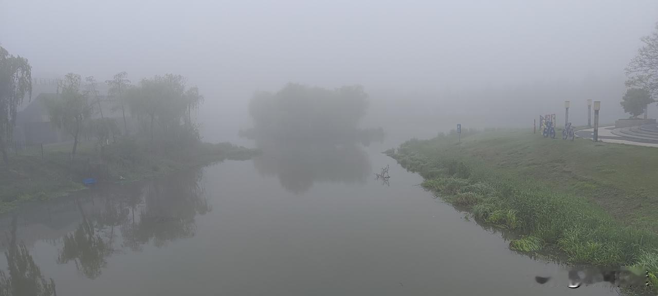 早晨,一出门就被这浓雾迷住了。本来只是走走,不知不觉沿着常跑的路径跑了5公里。