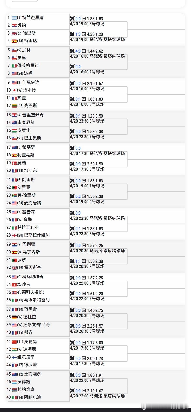 🟠ATP1000马德里男单资格赛签表【11】🇨🇳吴易昺vs🇮🇳达姆尼中