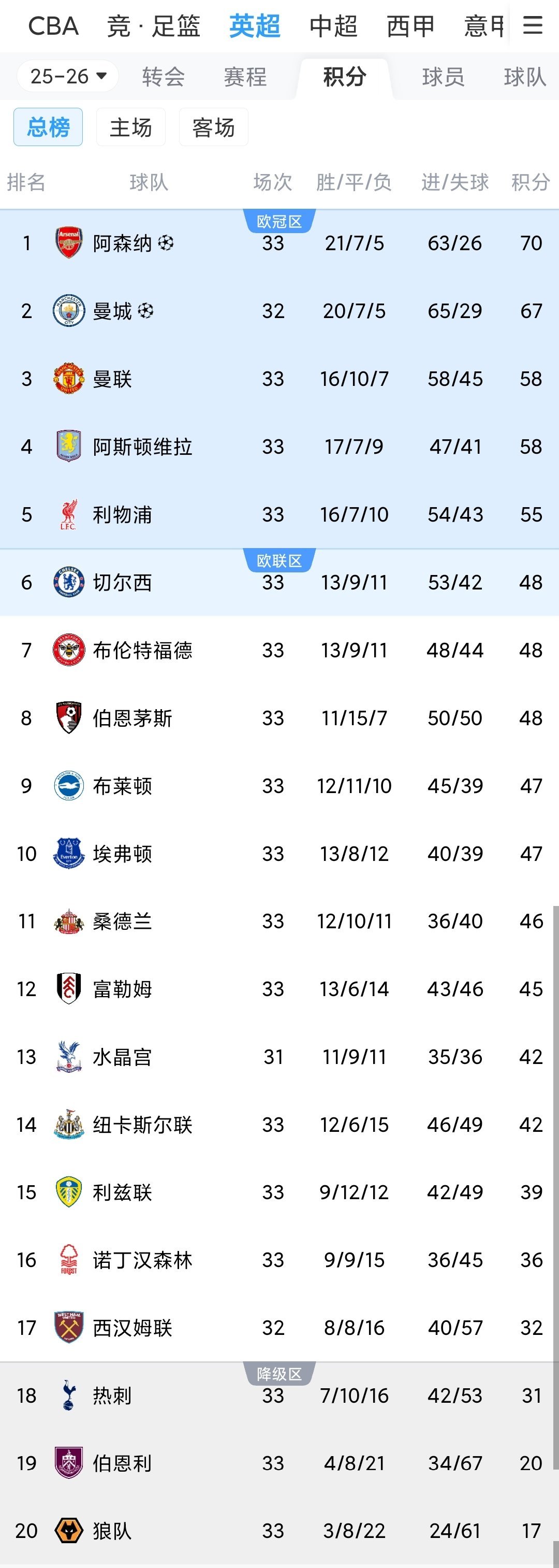 曼城赢了,夺冠赔率又超过了阿森纳,势头不对劲了。阿森纳欧冠还得打,后面很难了。很意外的是,热刺居然要降级了。