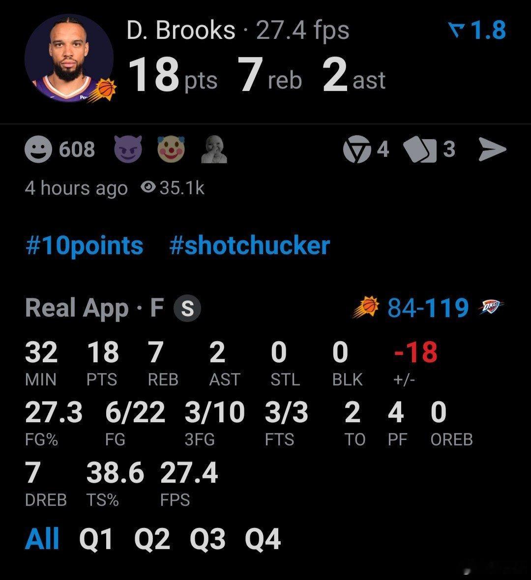杰伦·格林今天出战32分钟,17分(投篮16中6,三分7中2,罚球4中3),5板,3失误。狄龙18分(投篮22中6, 三分10中3)7板,2助。一次恶意犯规