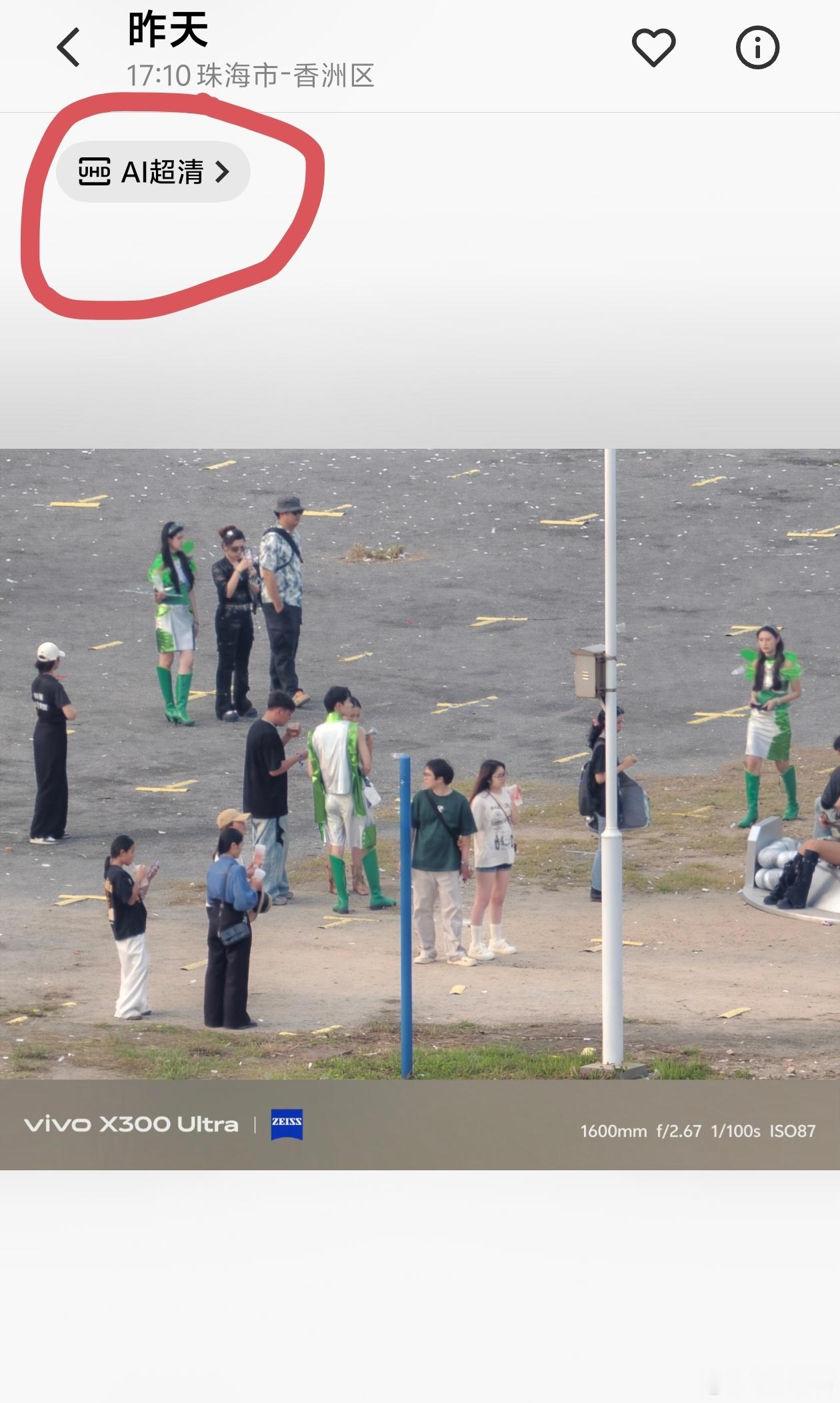 vivo X300 Ultra这个功能有点意思就是Ai超清昨天在珠海用增距镜3200mm拍到了音乐节的场景但是这个距离,很难不糊掉如果糊了,就用AI超清处理一下。一下子细节就出来,更加立体了。我还是那个观点,计算摄影没有太大的问题,拍的到远比看不到更拍不到更重要。图2是原图图3是AI超清处理后的你觉得如何? 珠海·珠海长隆横琴湾酒店