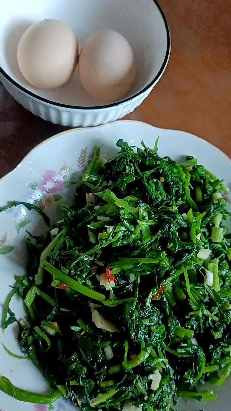 她特爱干净,于是把荠荠菜反反复复清洗好几遍,之后才放到锅里加水和鸡蛋一起煮上了,当锅煮一个开后,又用铲子挨个把鸡蛋外皮敲破碎,说便于吸收荠荠菜汁。接着又煮一个开,才算大功告成,煮好了荠荠菜鸡蛋。早上我俩一人吃一个荠荠菜煮绿了鸡蛋。