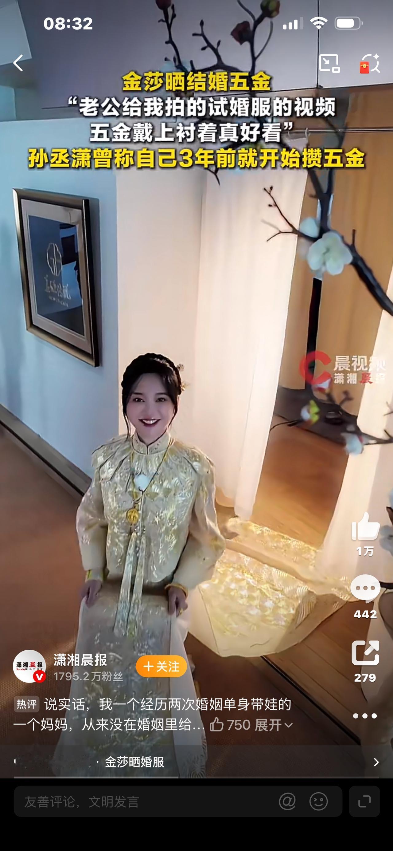 谁看了不羡慕!43岁金莎晒中式婚服,全套结婚五金直接闪瞎全网!