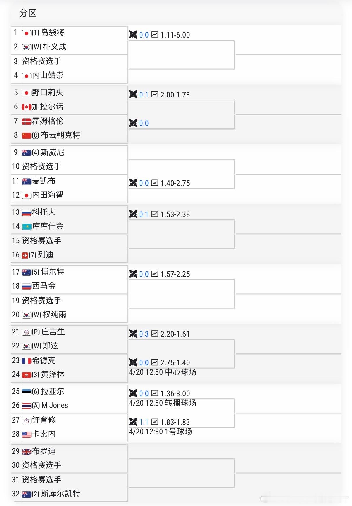 🔵ATPCH75光州男单正赛签表【8】🇨🇳布云朝克特vs🇩🇰霍姆格伦中