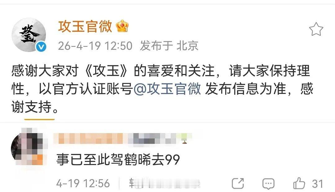 《攻玉》的瓜传得这么久,还各种被诅咒,看着倒不像真要拒掉这个饼