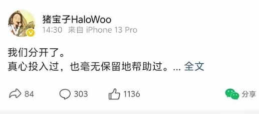 猪宝子分手发文 刷到猪宝子星星分手心里还挺感慨的,之前看他俩谈恋爱甜滋滋的,日