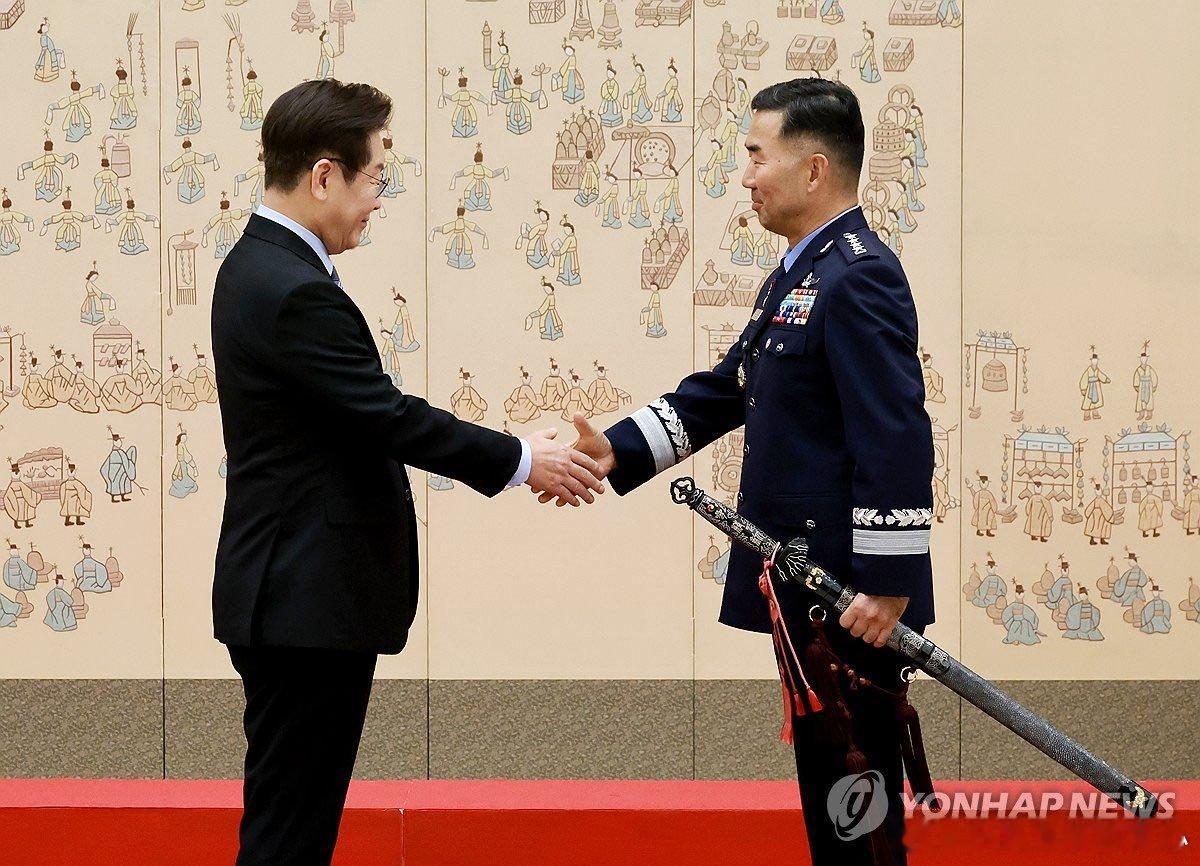 李在明向晋升的将领授予三精剑。这一传统是从1980年代开始的,起初是三精刀,后来