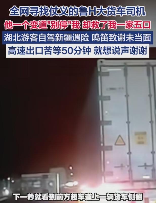 “全网寻找鲁H大货车司机。”4月4日,湖北,男子一家5口自驾新疆游玩,高速路上,他想超车,他刚打开变道的转向灯,前方的一辆大货车,居然也打开转向灯,他要变道,他恶意别车,男子一肚子气,结果下一秒,前面的一幕让他魂飞魄散,大货车司机居然用车身护住了他们一家口的命。