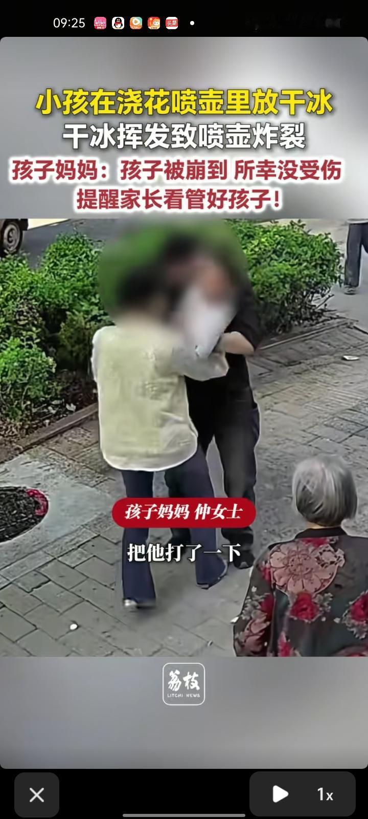 4月18日,山东潍坊。监控记录下惊险一幕,小孩拿着浇花喷壶在玩,恰好快递盒里面有干冰,就把干冰放在浇花喷壶里,干冰挥发导致喷壶炸裂,在场所有人被吓到了。 孩子妈妈仲女士称,孩子被崩到,所幸没受伤,提醒家长看管好孩子。