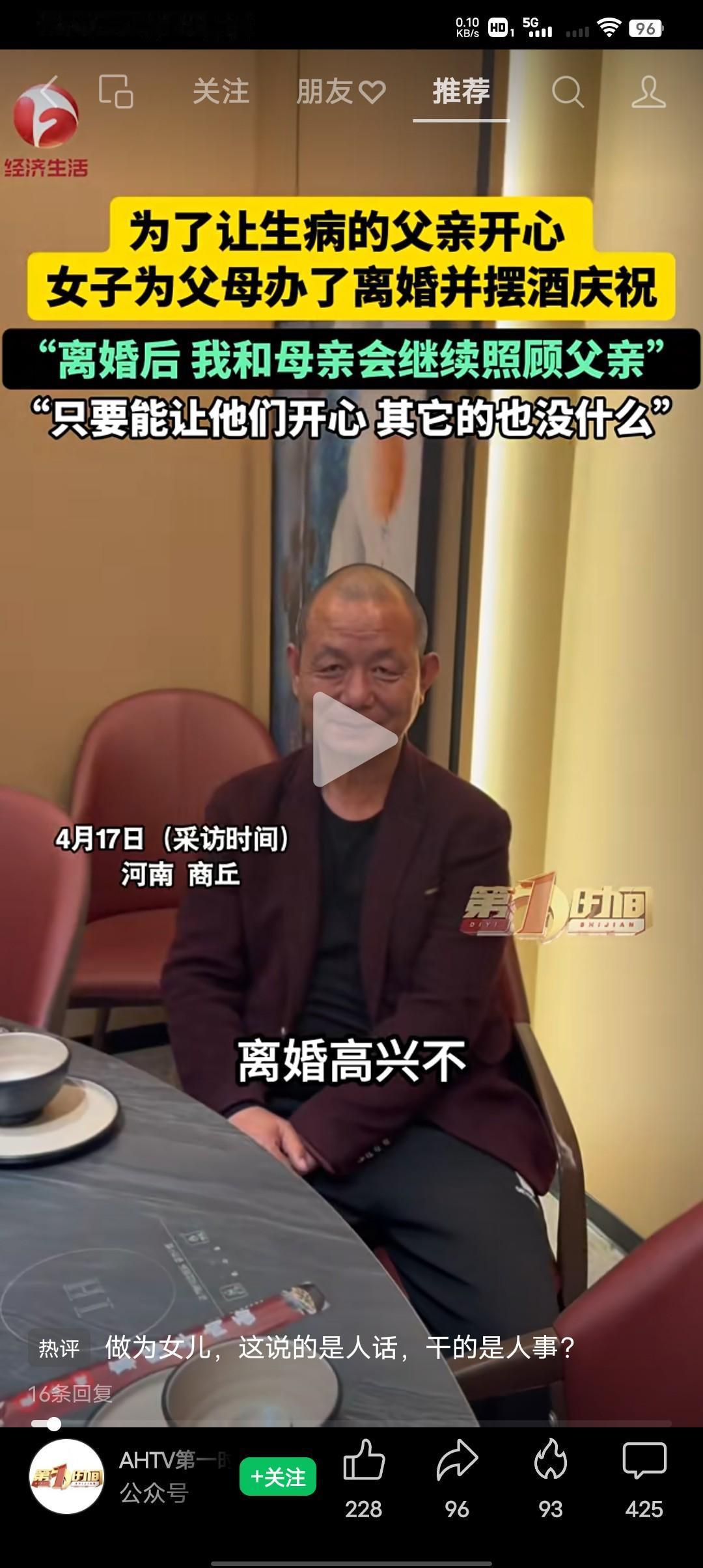 做子女能说出祝爸妈离婚快乐这样的话,到底女子是怎么想的?我真的不明白,这是真孝顺还是为了博人眼球?有网友说,这位女士的心思是在给她妈找一个冤种吗?离婚以后她妈就没有照顾病人的义务了你确定这样真的好吗?是给他妈扫清找下家的障碍吗?